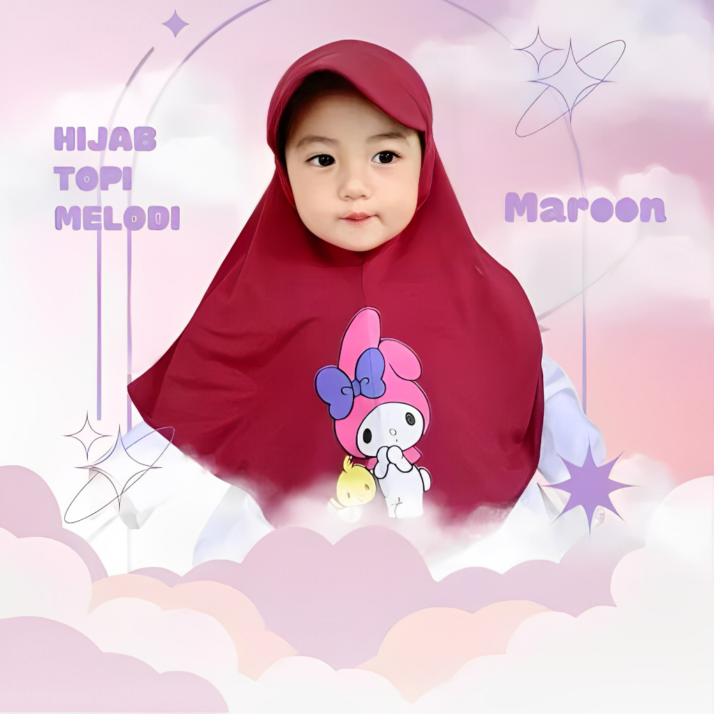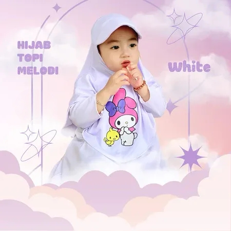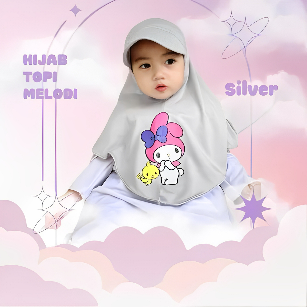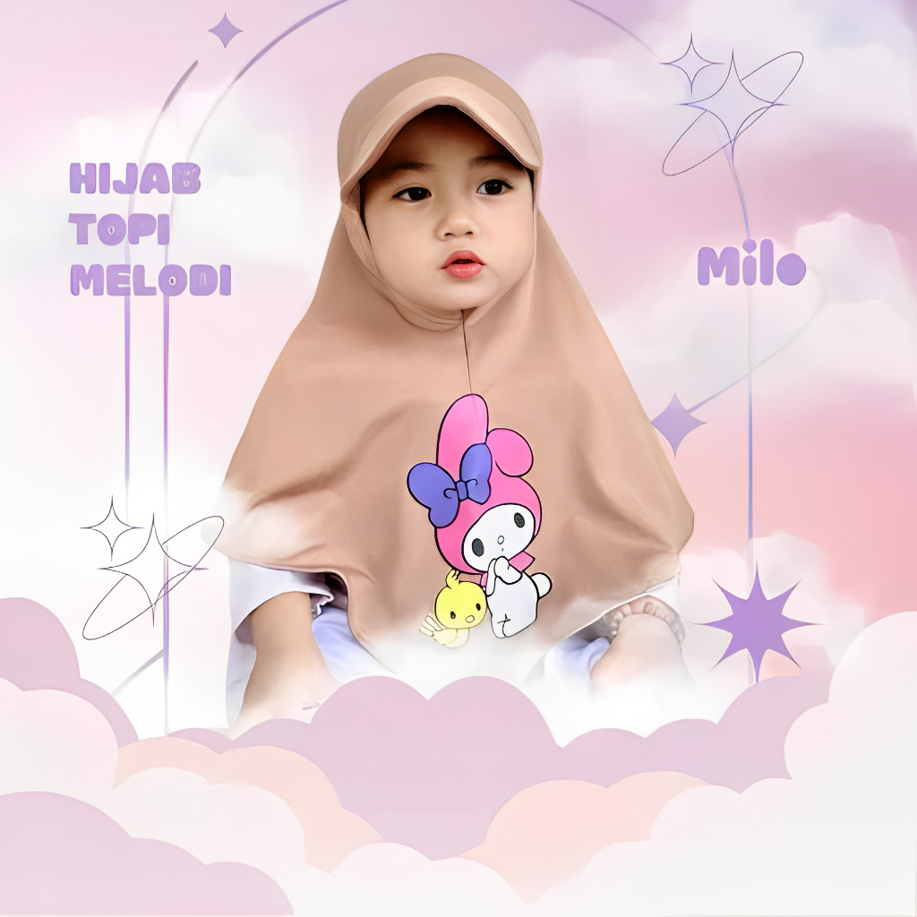 HIJAB TOPI ANAK KARAKTER MELODY 1 2 3 4 TAHUN, hijab topi sport anak lucu