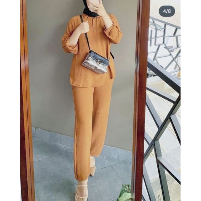 TREN TERBARU SETELAN WANITA CRINKLE PREMIUM | ONE SET CRINKLE | SETELAN CRINKLE WANITA POLOS