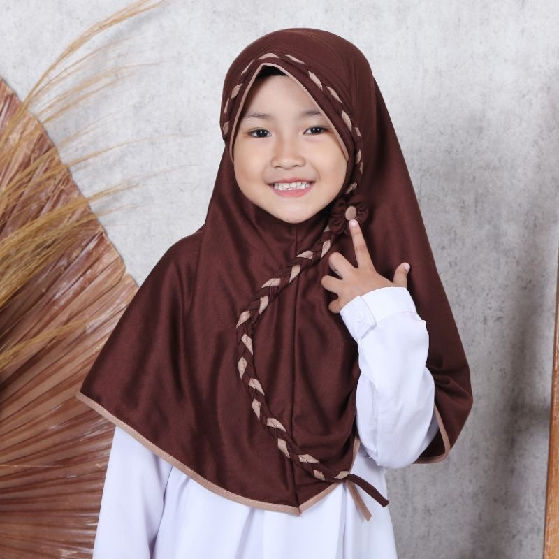 Hijab Instant Anak Sekolah TK SD Bahan Kaos | Jilbab Anak SD motif Kepang Bunga