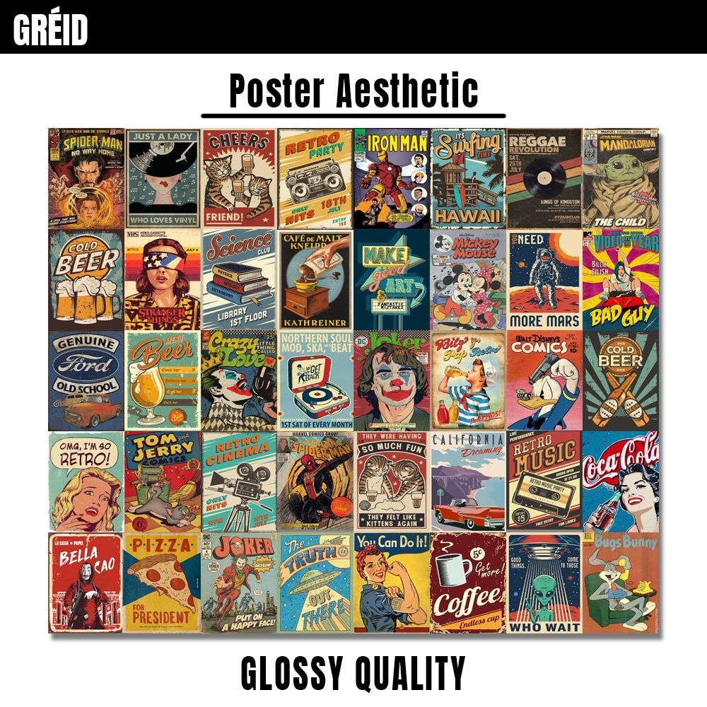 POSTER AESTHETIC ISI 48 / Poster dinding aesthetic / art wall custom poster paket / Poster murah / paket poster / poster band retro vintage black blue red purple brown avengers bts green grey viral aesthetic