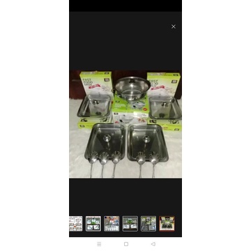 Paket Hemat Prasmanan Fastfood Tutup Kaca 4 Set + 1 Set Soup Warmer Bulat Bonus 5 Sendok - Komplit Set