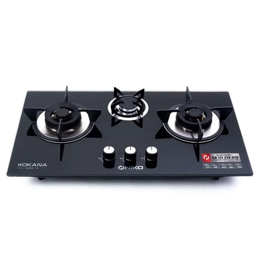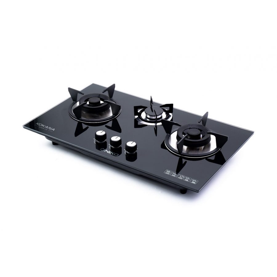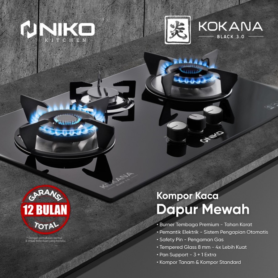NIKO KOKANA BLACK 3.0 KOMPOR GAS TANAM 3 TUNGKU TEMPERED GLASS