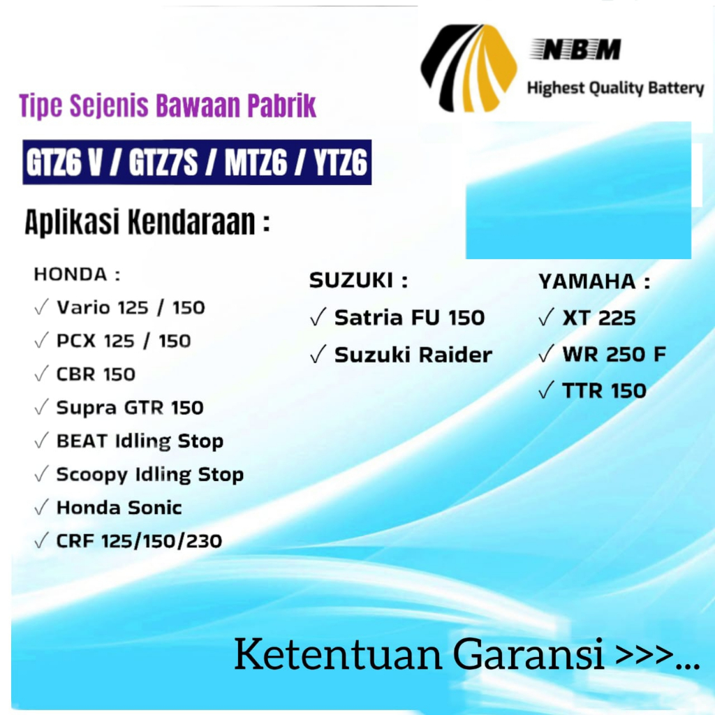 Aki Motor Vario 125/150/PCX 125/150/CBR 150/Supra GTR/Beat ISS/Scoopy donat/Satria FU/CRF/Sonic/Raider/New n max/New Aerox Alkaline GTZ7s Aki Kering