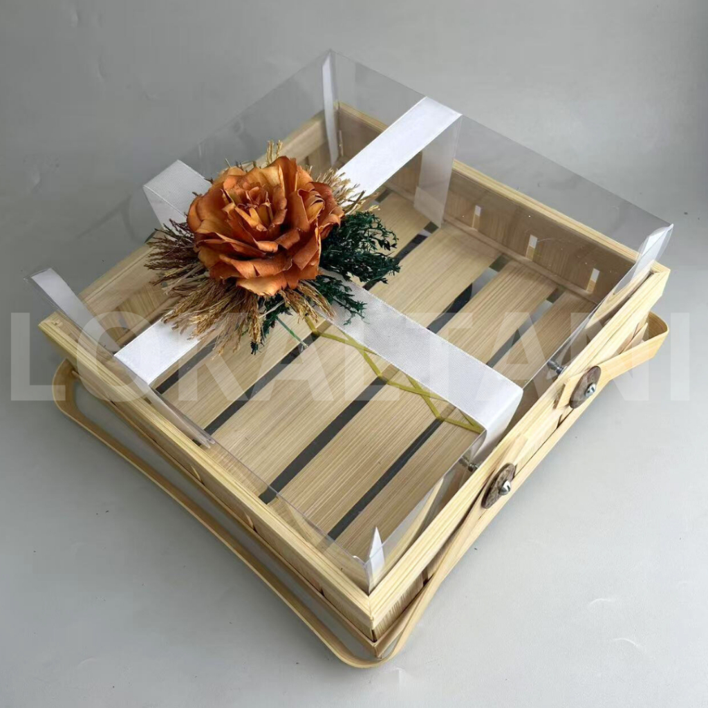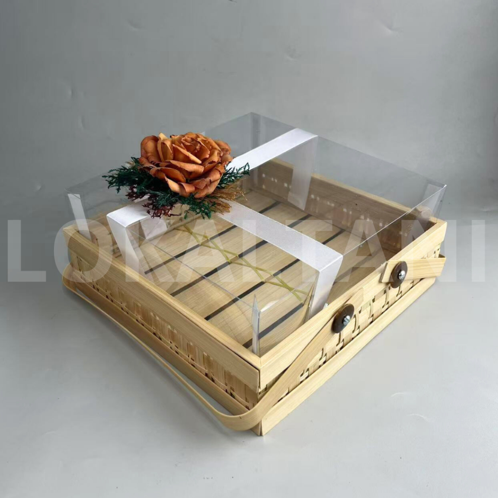 Keranjang Bambu Kotak/Keranjang Hantaran/Keranjang Kue mika 30CM Rustic Besar
