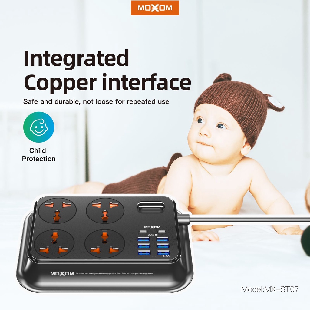 MOXOM Power Socket 3.4A 6 USB+2 PD Type-C + 4 Universal Power Socket (EU) 2Meter MX-ST07