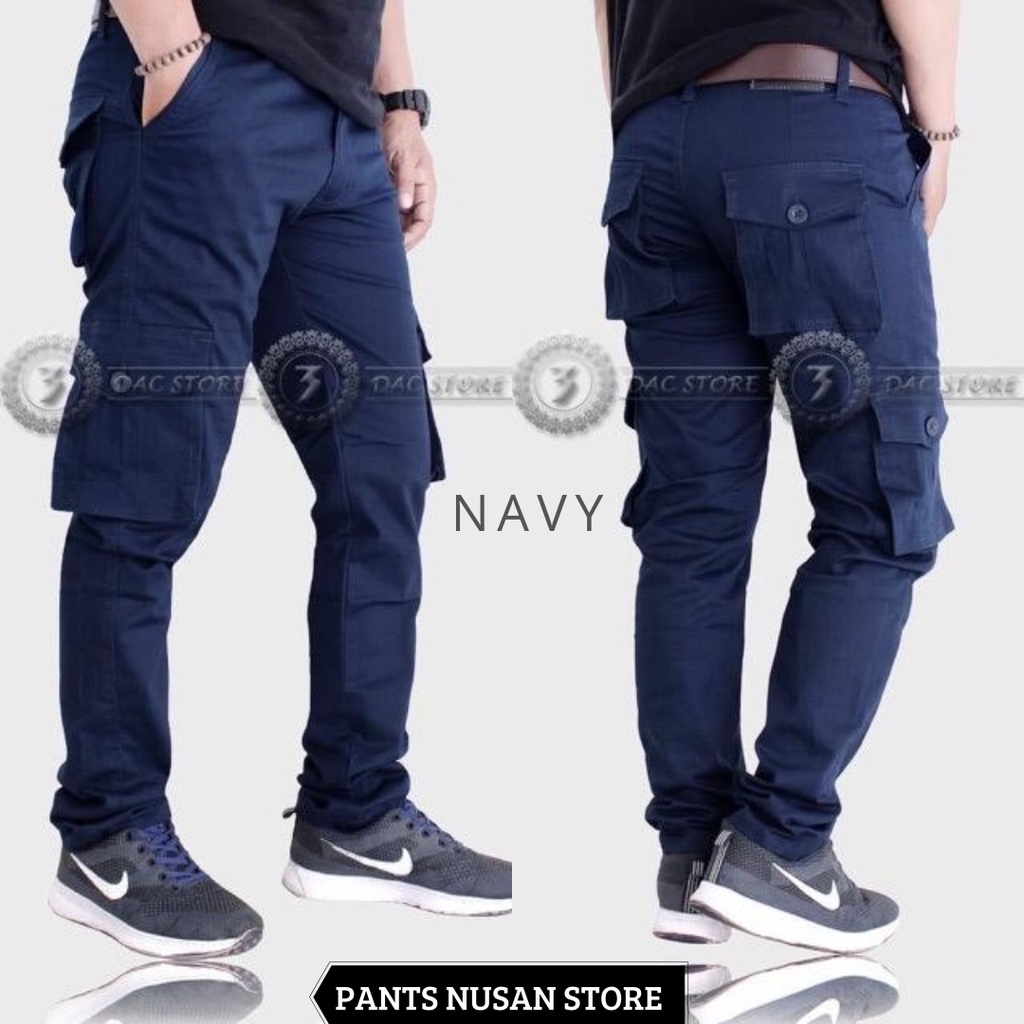 Langsung Order Celana Cargo PDL Warna Navy Biru Dongker Panjang Pria Dewasa Slimfit Original
