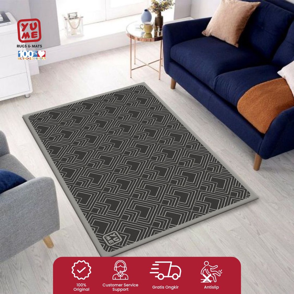 YUME Karpet Lantai/Ruang Tamu Anti Slip 100X150Cm Motif Squares