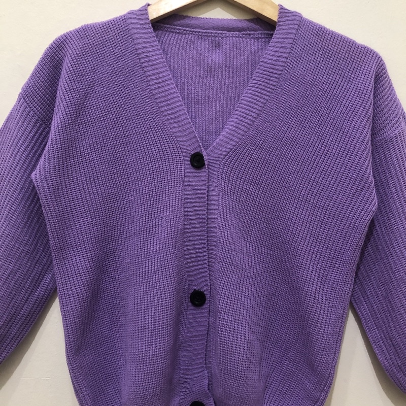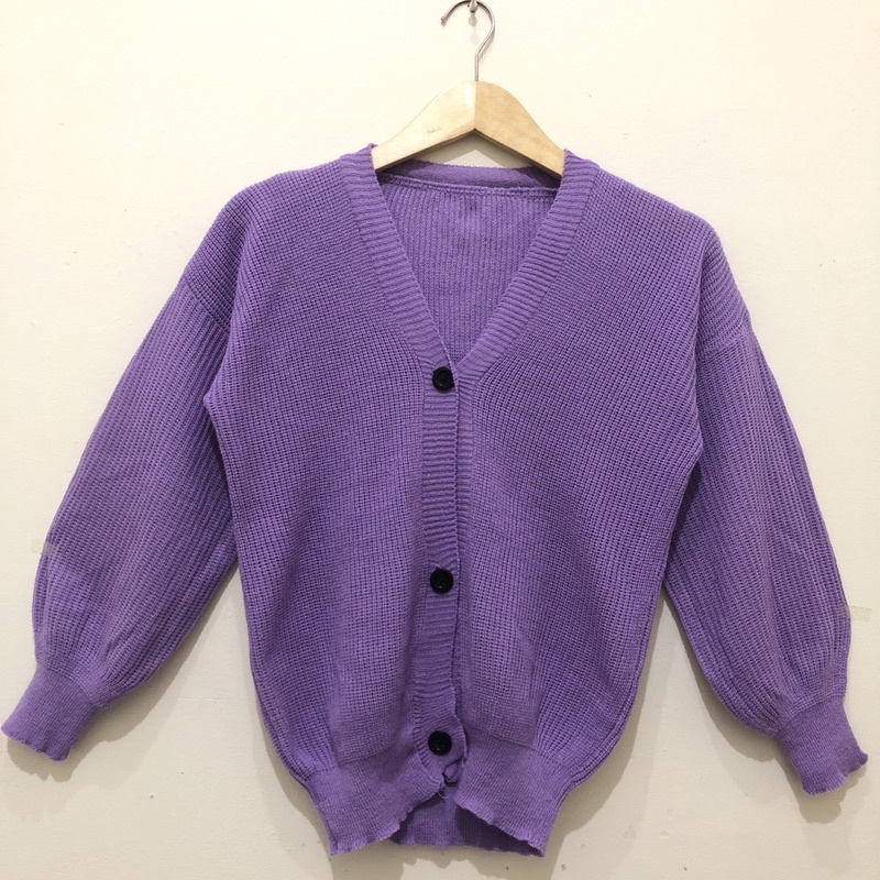 [PRELOVED] Cardigan rajut crop wanita lengan balon lilac ungu