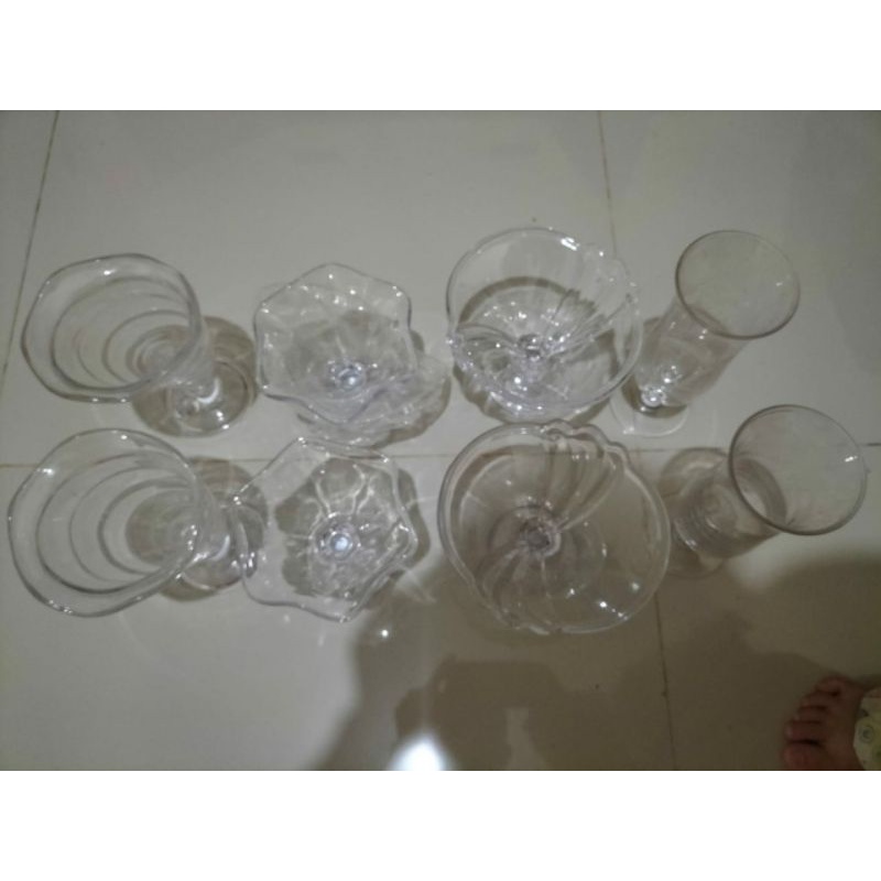 Gelas Plastik Bening/Mika Anti Pecah Motif Campur..