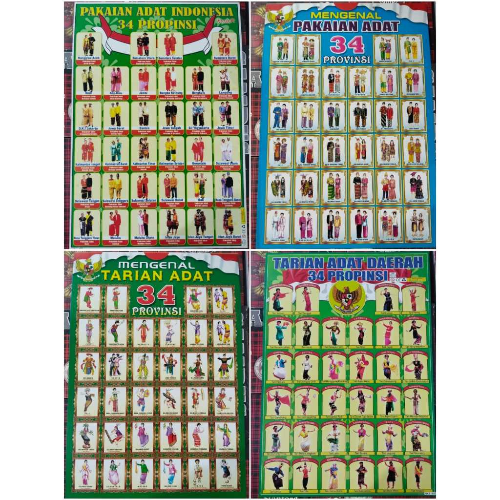 POSTER KARTON PAKAIAN ADAT | POSTER TARIAN ADAT | POSTER UPACARA ADAT | POSTER SENJATA TRADISIONAL 34 PROVINSI
