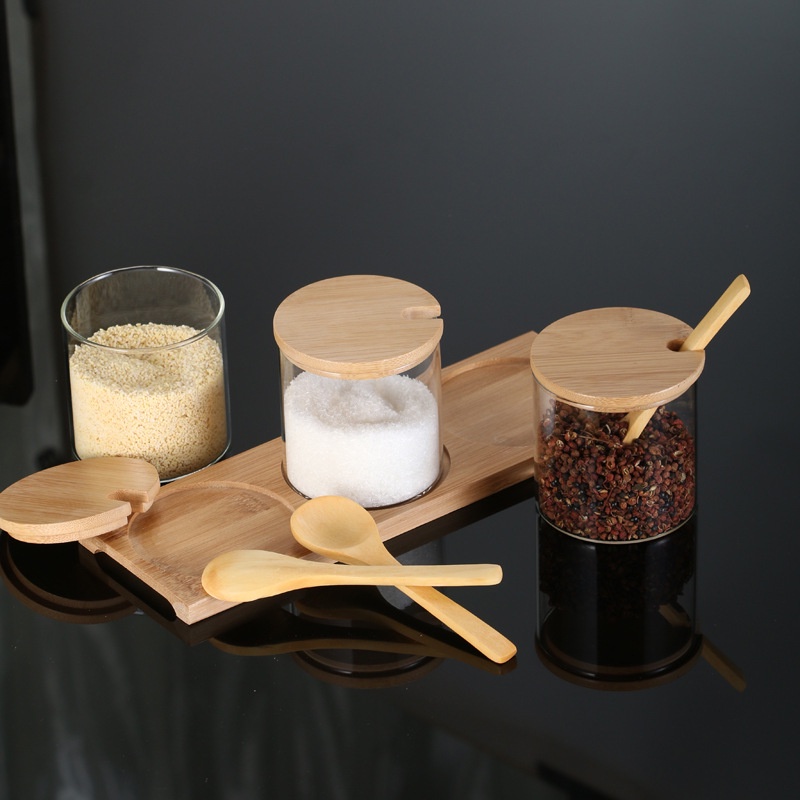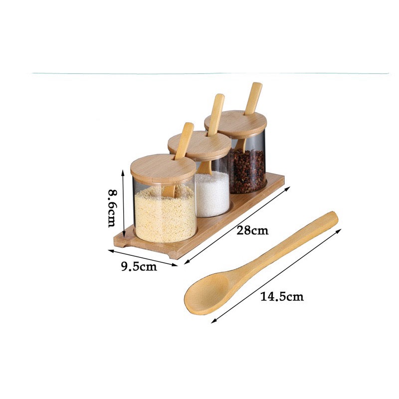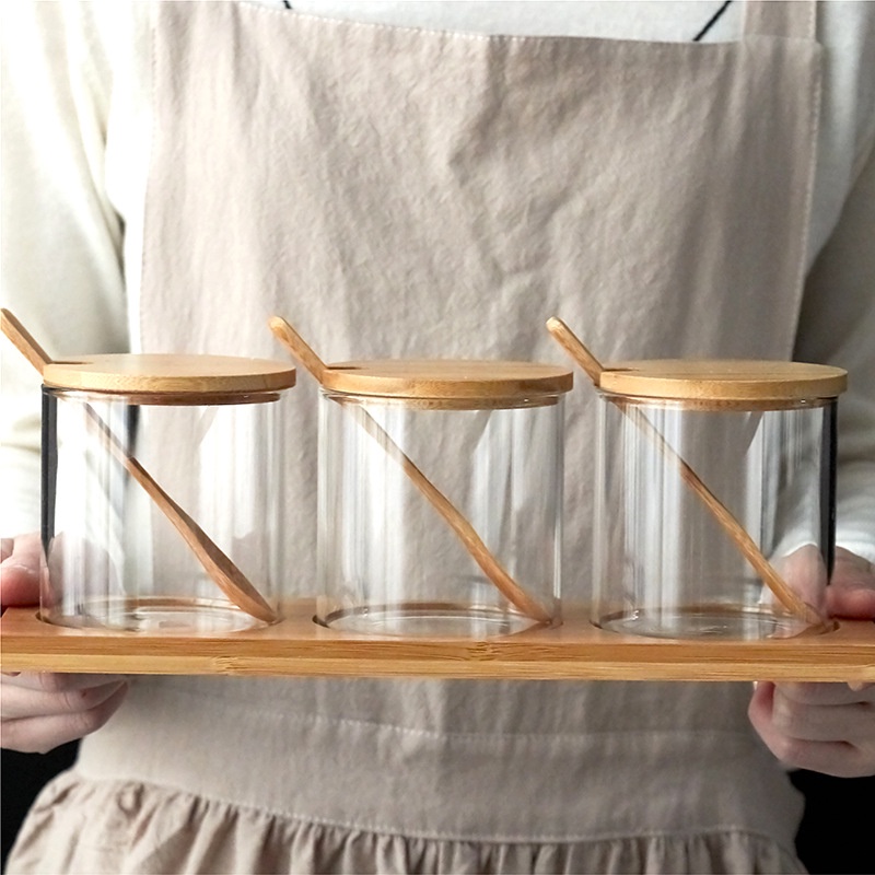 TEMPAT BUMBU KACA SET ISI 3 TOPLES DENGAN ALAS DAN PENUTUP KAYU / VINTAGE STORAGE JAR / SEASONING JAR RAK BUMBU SET TOPLES PENYIMPANAN BUMBU