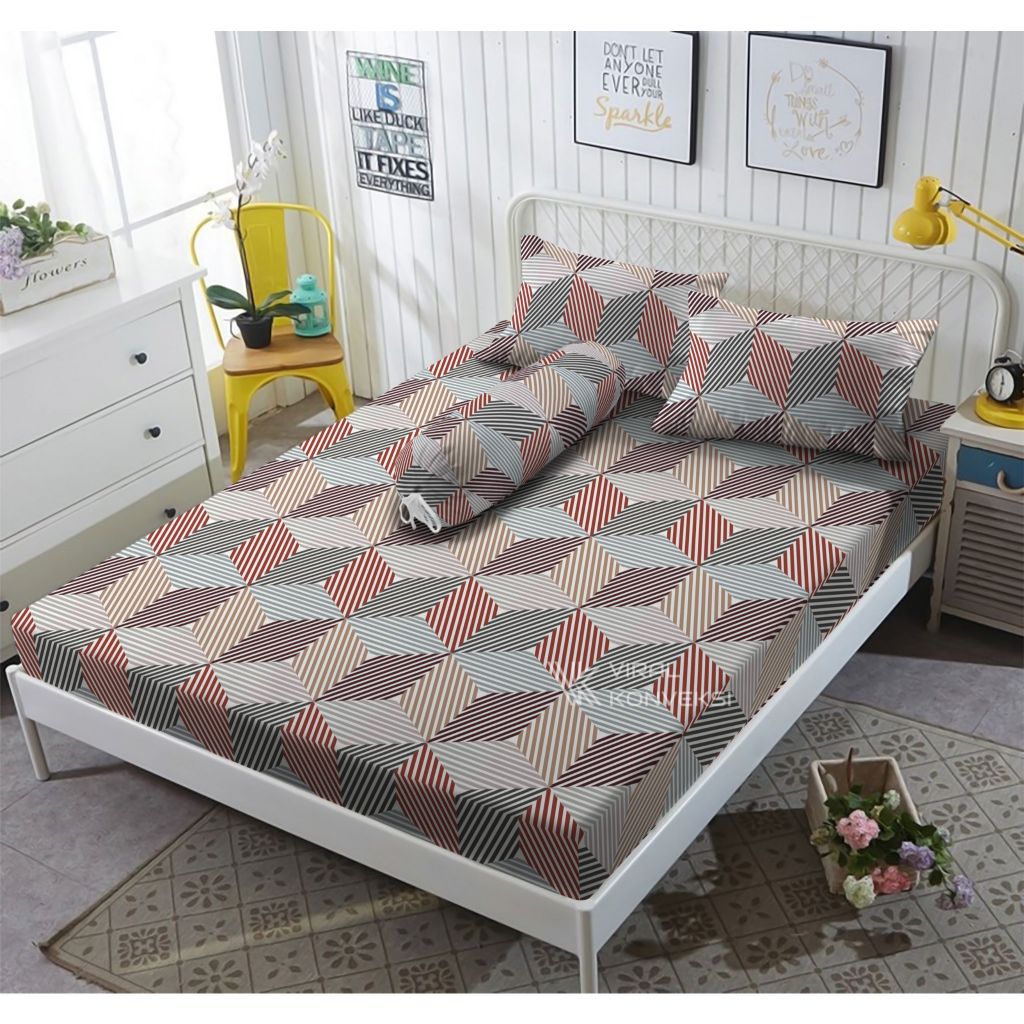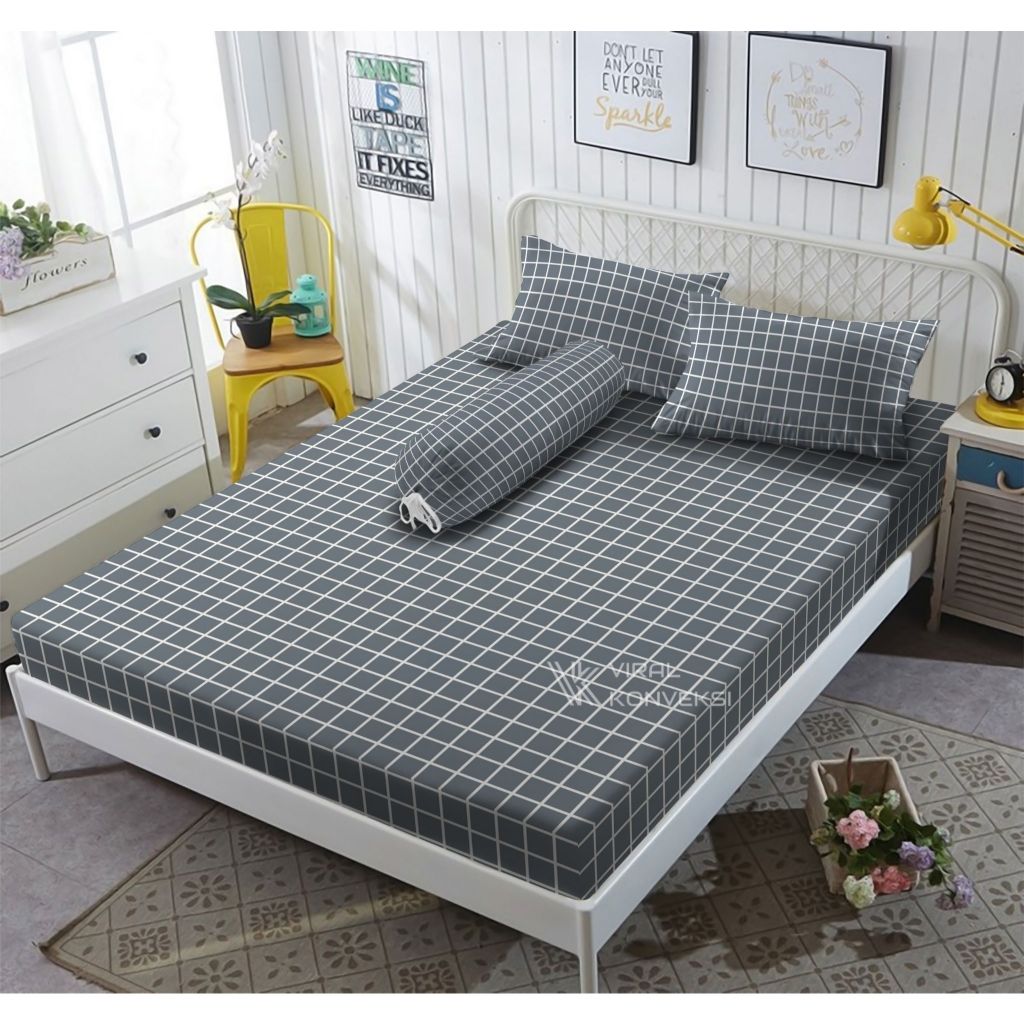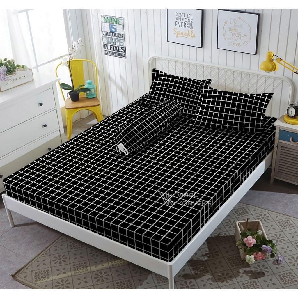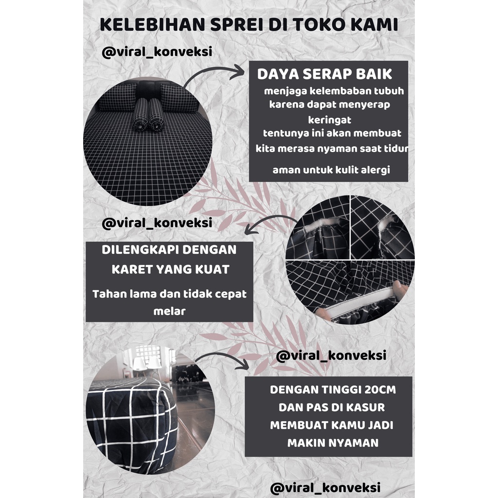 Sprei Homemade Motif Kotak Aesthetic 180x200 160x200 120x200 Sprei Saja Tanpa Sarban Anti Geser Murah