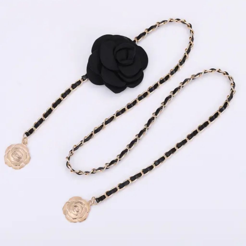 Ikat pinggang Rantai Metal Kulit Flower belt Rantai Slim Dress Fashion Bunga
