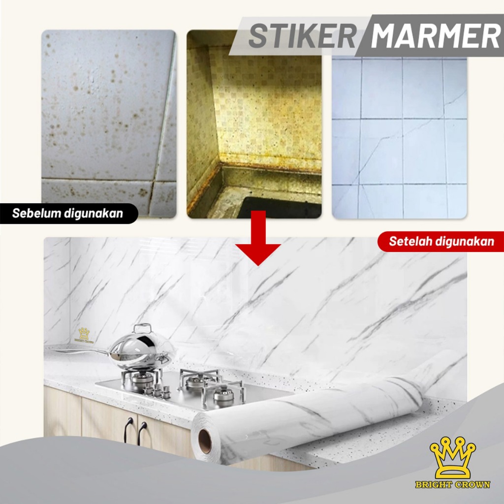 Bright Crown Wallpaper Stiker Dapur Motif Marmer Marble Anti Air Anti Minyak 60X500CM HIGH QUALITY