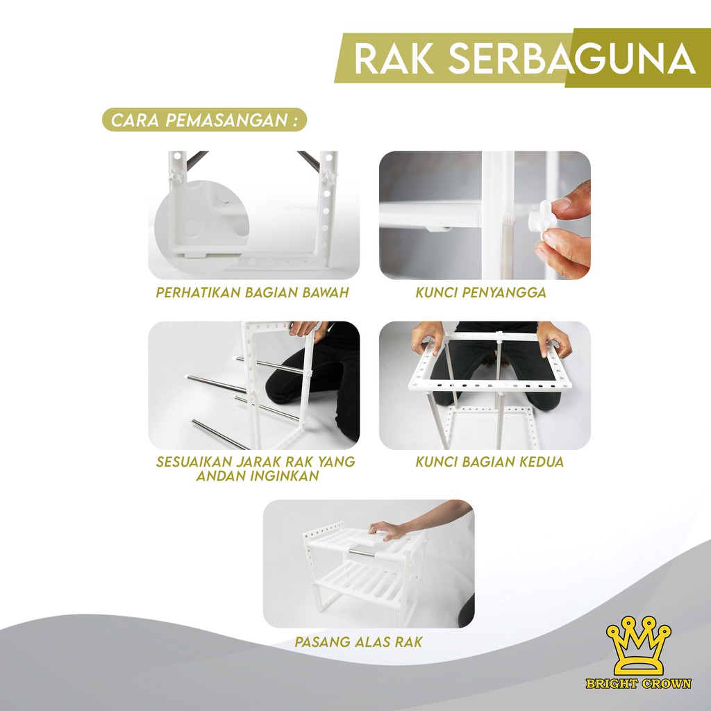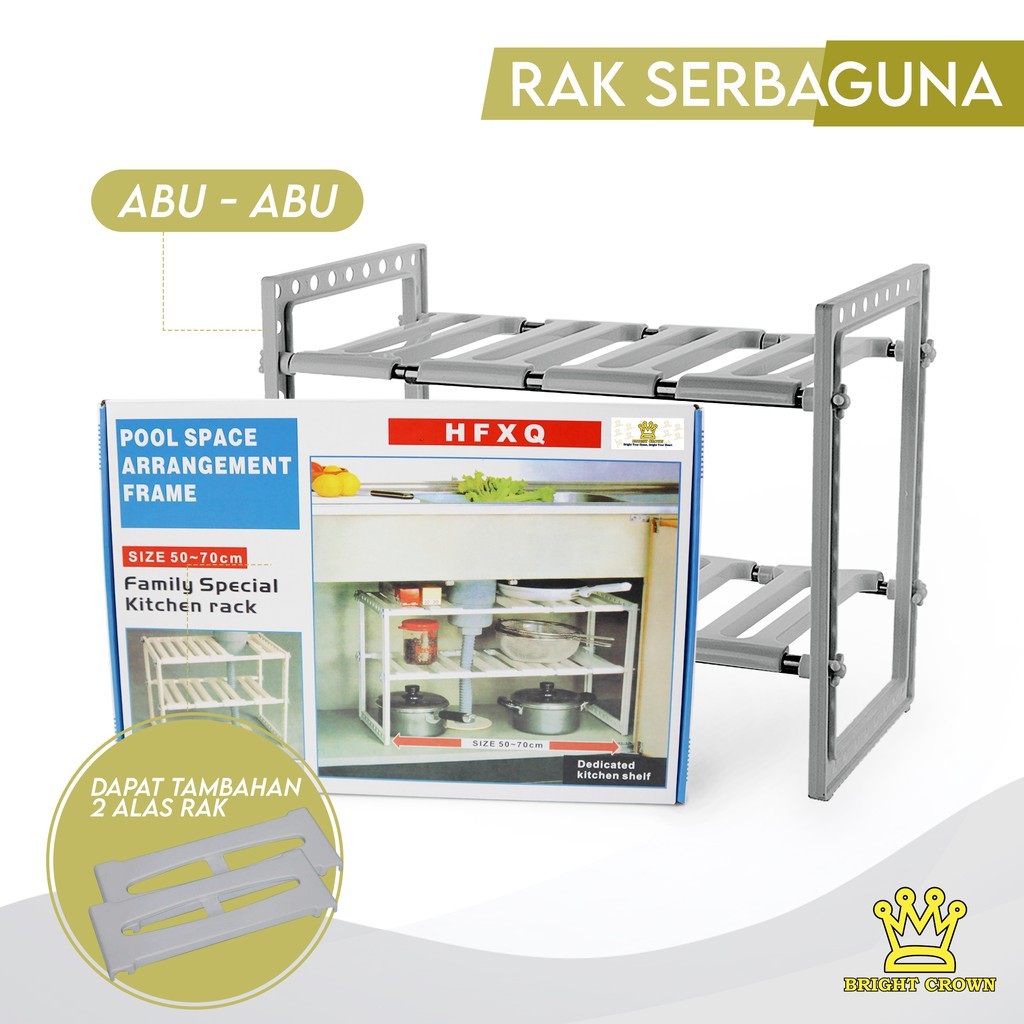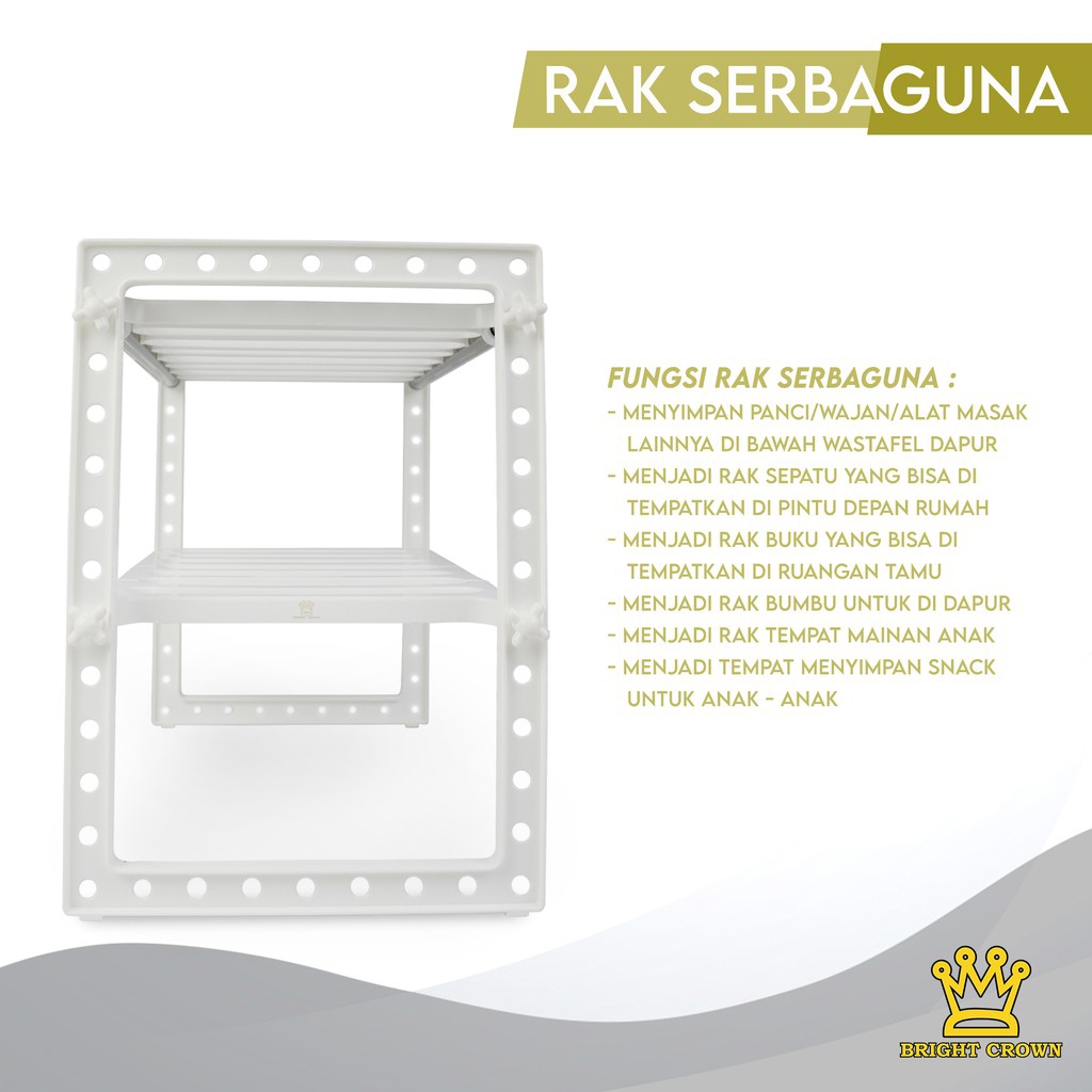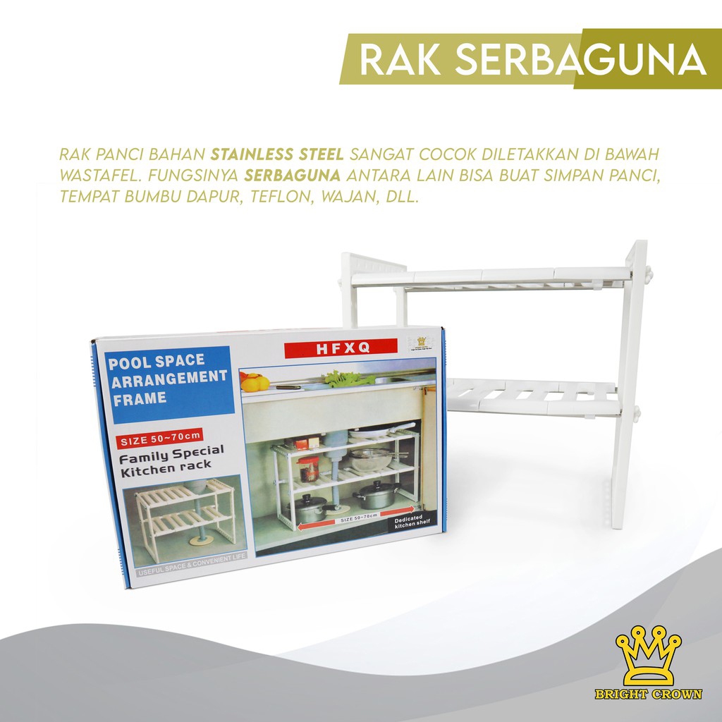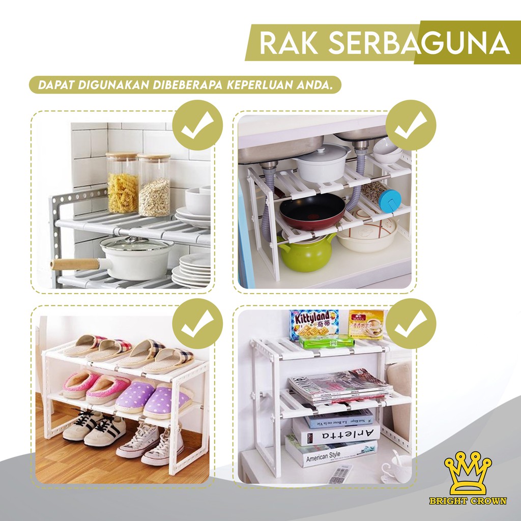 Bright Crown Rak Multifungsi Rak Panci Bawah Wastafel Rak Dapur/Sepatu/Buku 2 Tingkat IMPORT