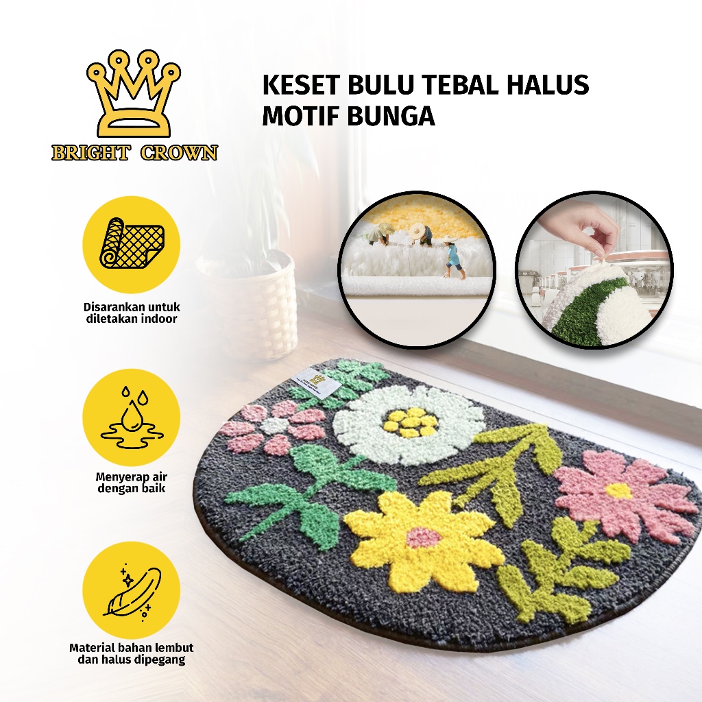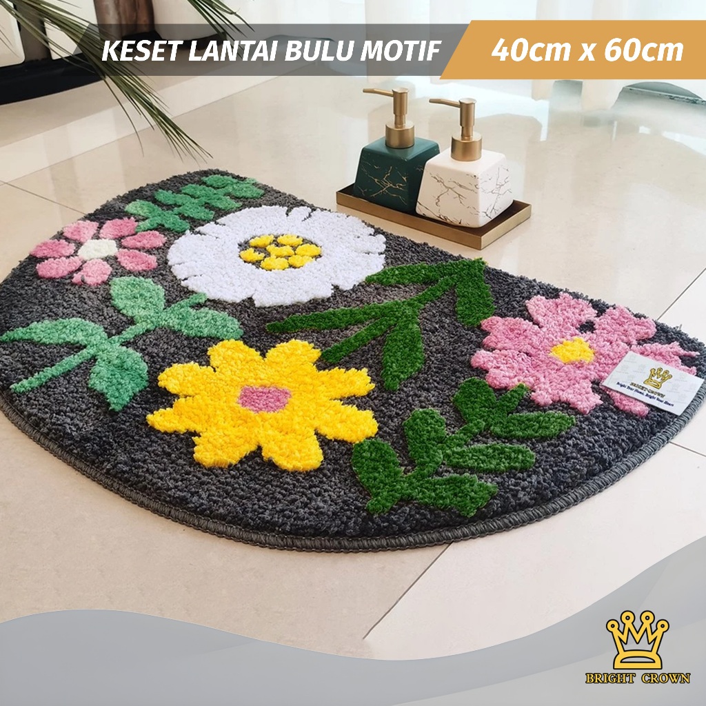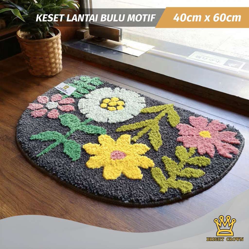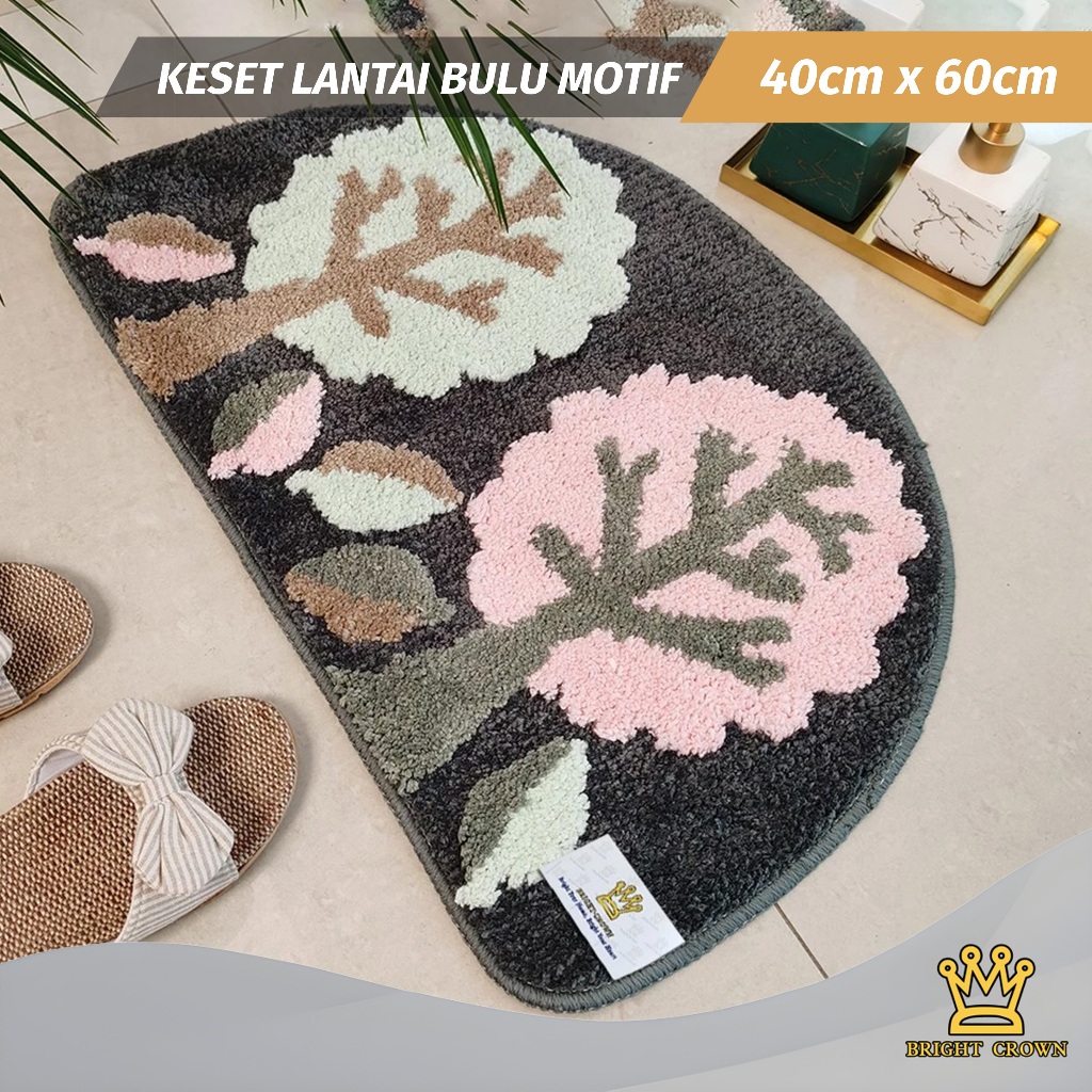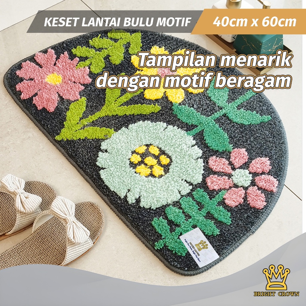 Bright Crown Keset Bulu Motif Bunga Anti Slip Uk 40 X 60cm House Mat Flowers