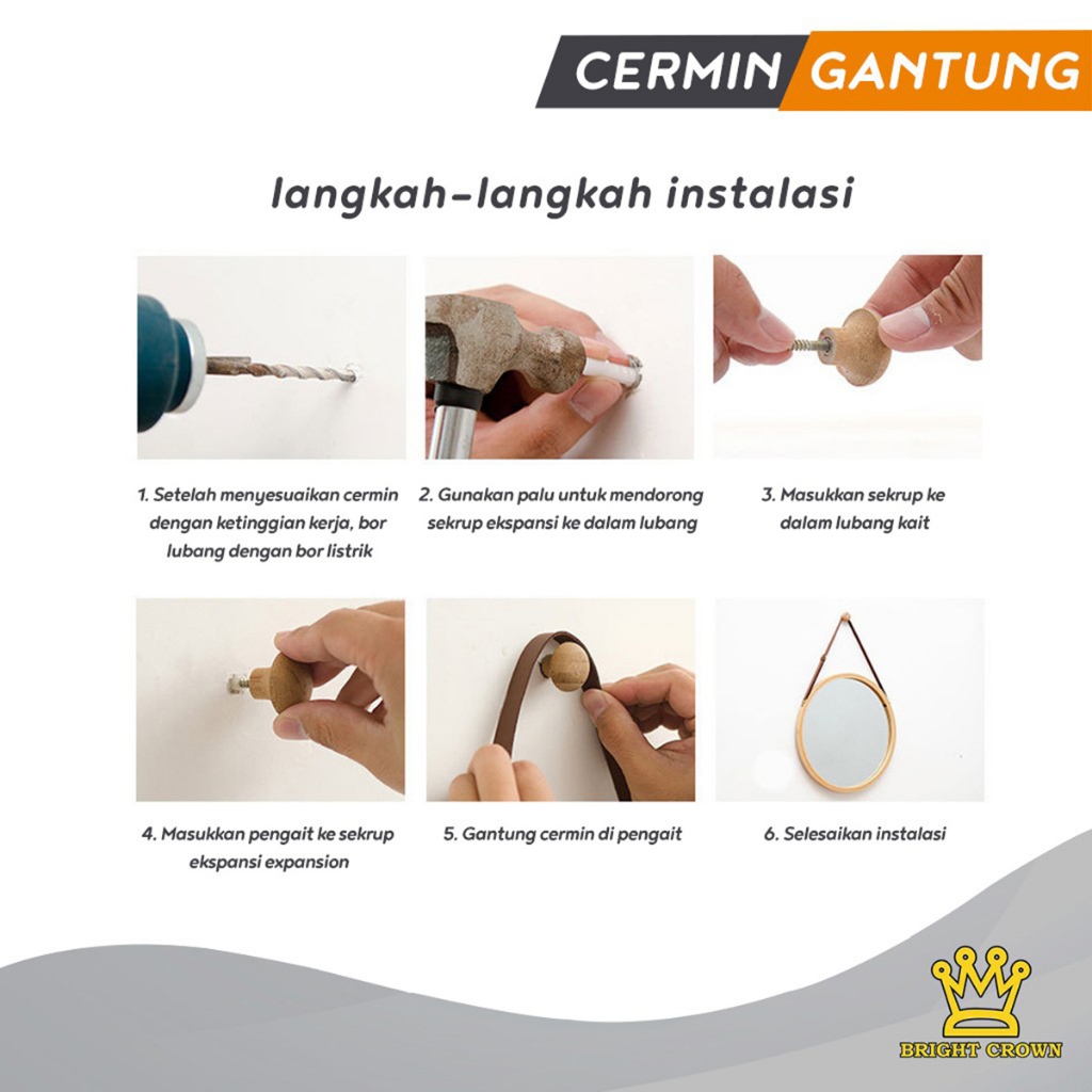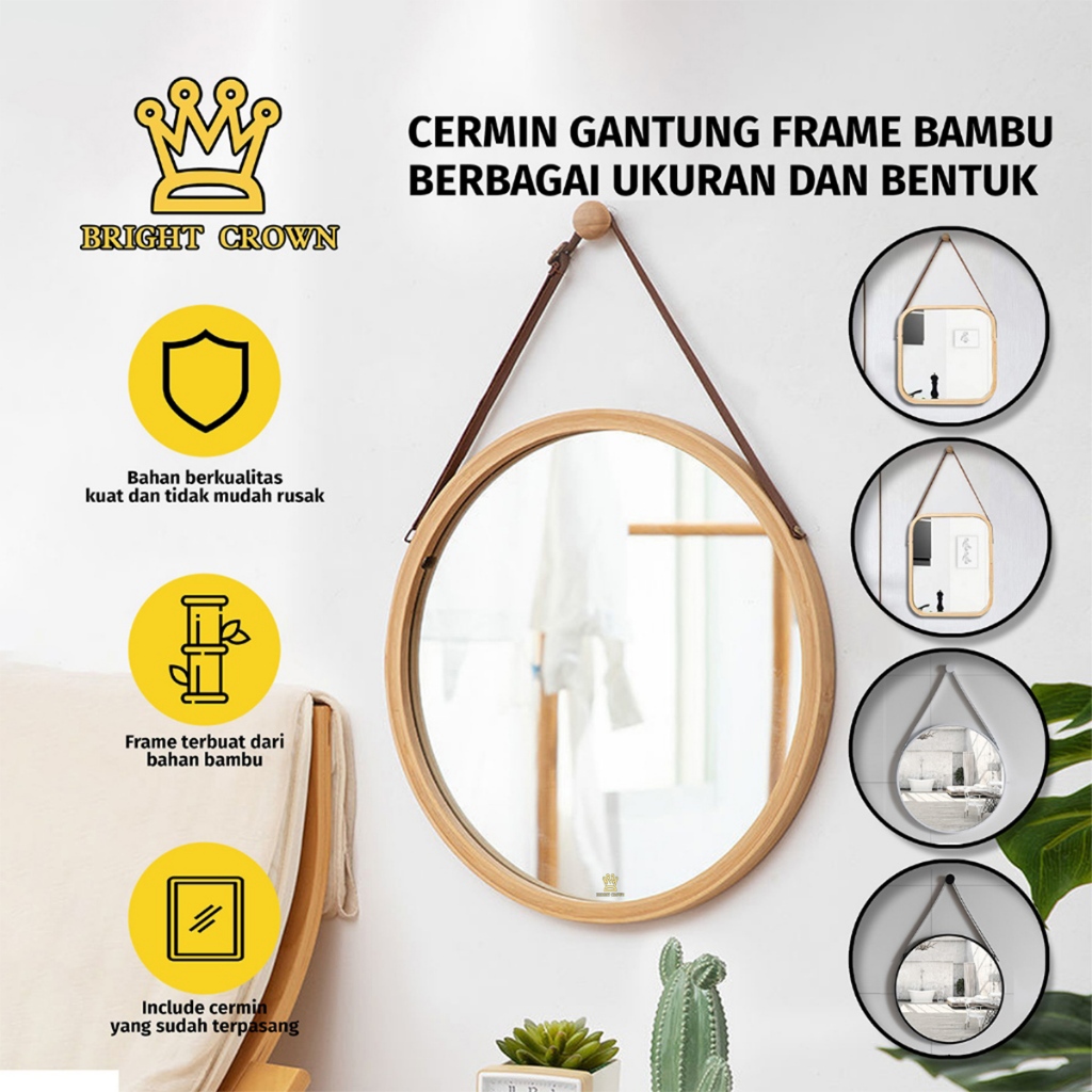 Bright Crown Cermin Dinding Gantung Hiasan Dinding Frame Bambu Tali Strap 5 MODEL