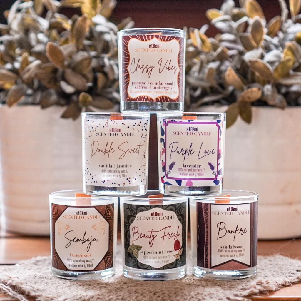 etBeni | 60ml | LILIN AROMATERAPI | 100% NATURAL SOY SCENTED CANDLE | READYSTOCK