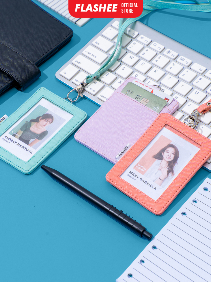 Flashee Name Tag Cole Lanyard ID Card Holder Kulit Berkualitas PU Leather Lanyard Name Tag