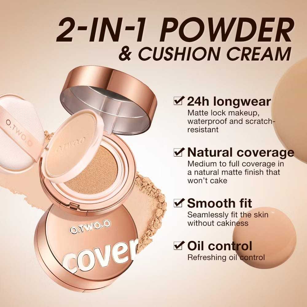 OTWOO 2 IN 1 Cushion Foundation & Setting Powder All Day Soft Focus Powder And Cushion Cream 24H long-lasting makeup Waterproof Light Natural Finish