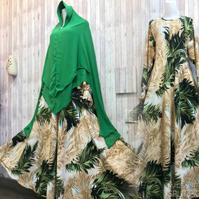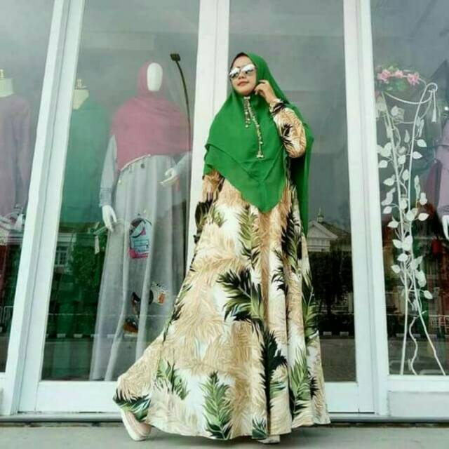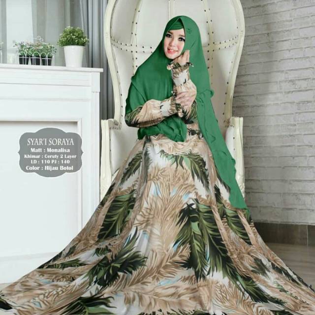 Gamis Monalisa Dress Motif Hijab Syari #133 baju muslimah hijau green