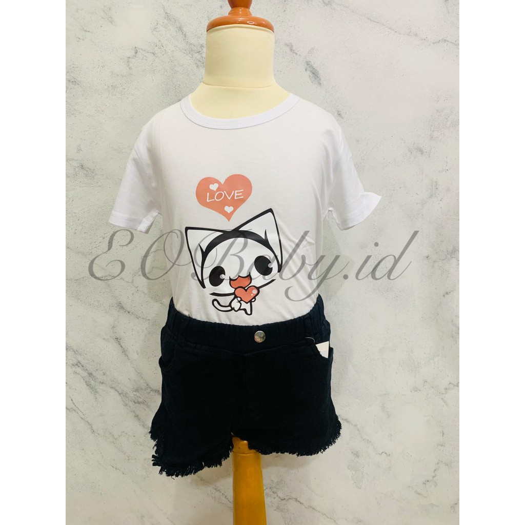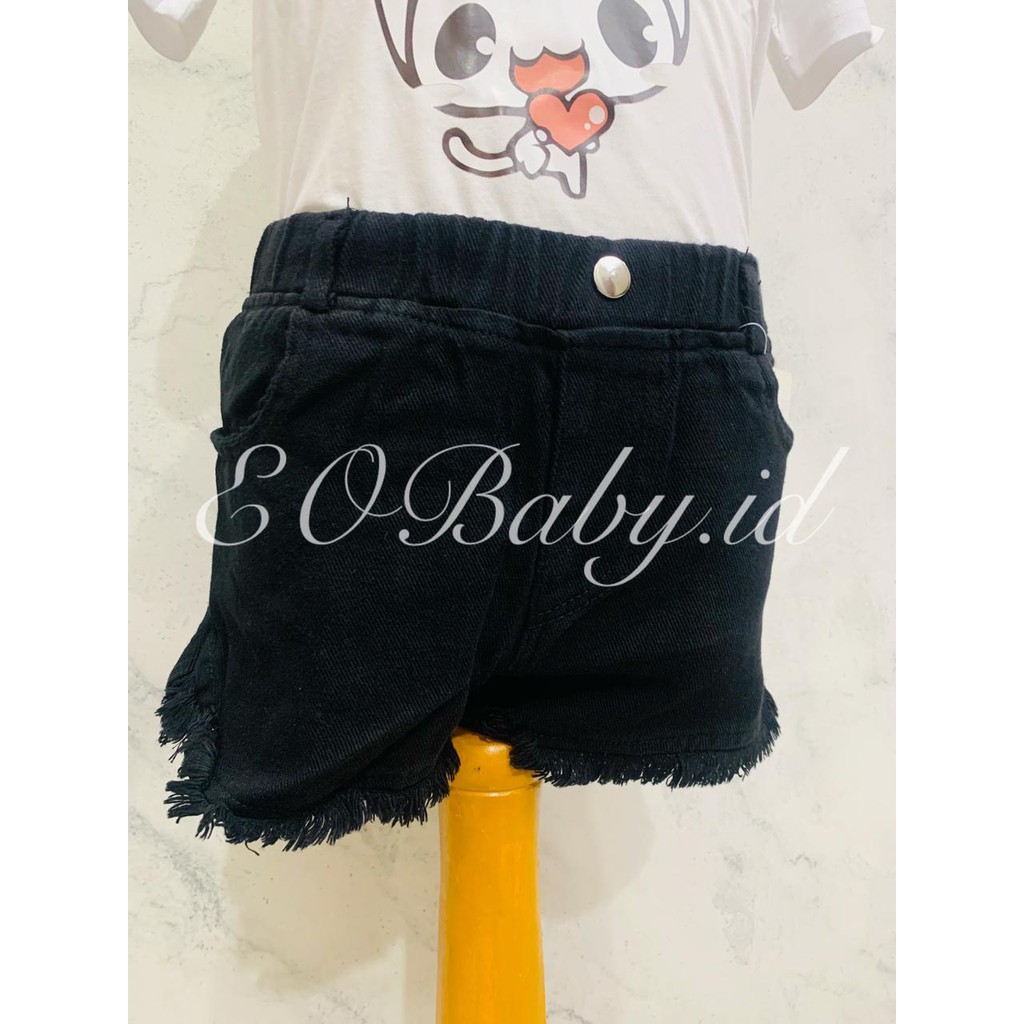 EOBaby K05 Celana Pendek Anak Perempuan Cewek Jeans Hitam Putih