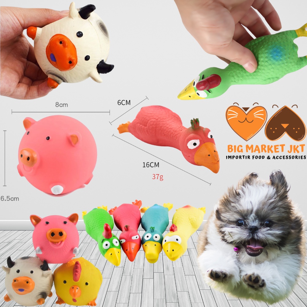 Mainan Anjing Lucu Bunyi Squeaky – Ayam Pipih & Bola Hewan Babi Sapi Ayam