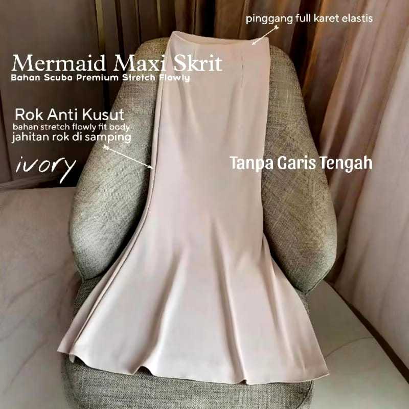 MERMAID MAXI SKIRT - ROK FLARE PANJANG WANITA MERMAID MAXI SKIRT SCUBA PREMIUM ANTI KUSUT STRETCH FLOWLY