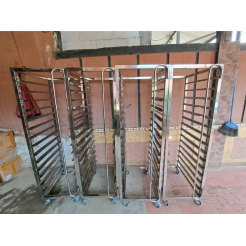 Rak Loyang bakery 10 Susun, Troly rak Loyang kue, ukuran 60x40cm