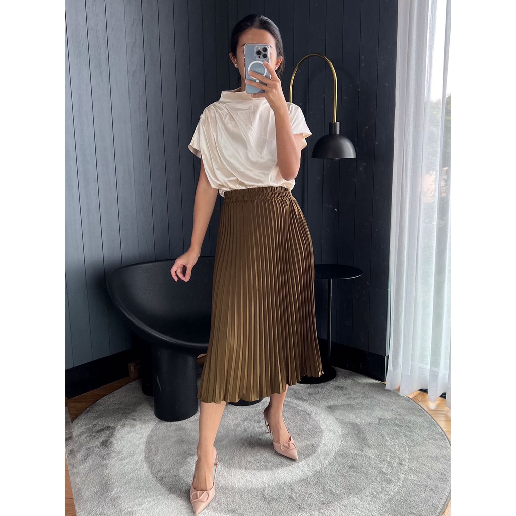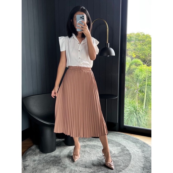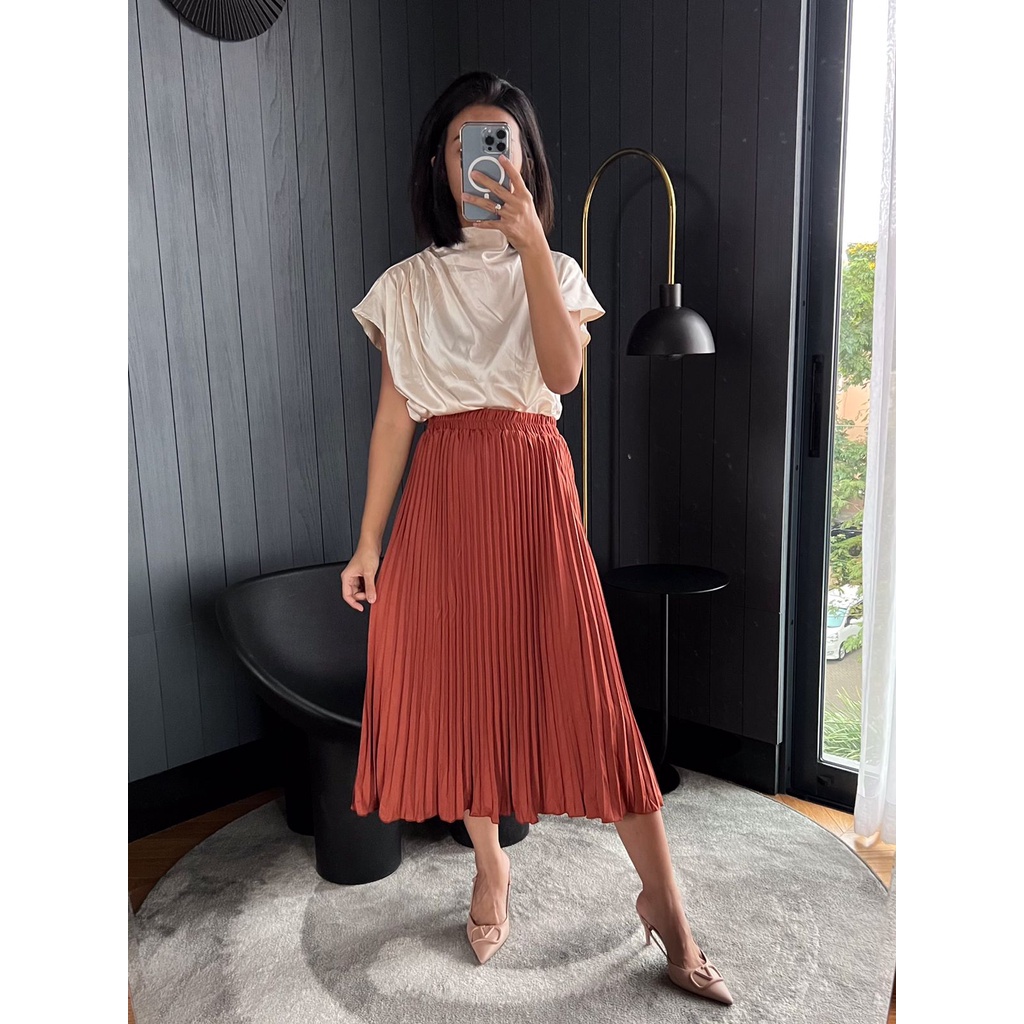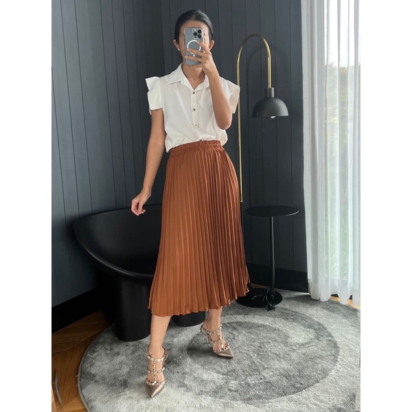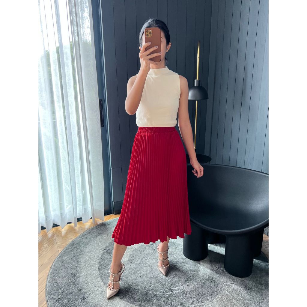 Rok Plisket Midi / Rok Plisket Tanggung / Rok 7/8 / Plisket Premium / Pleated Skirt