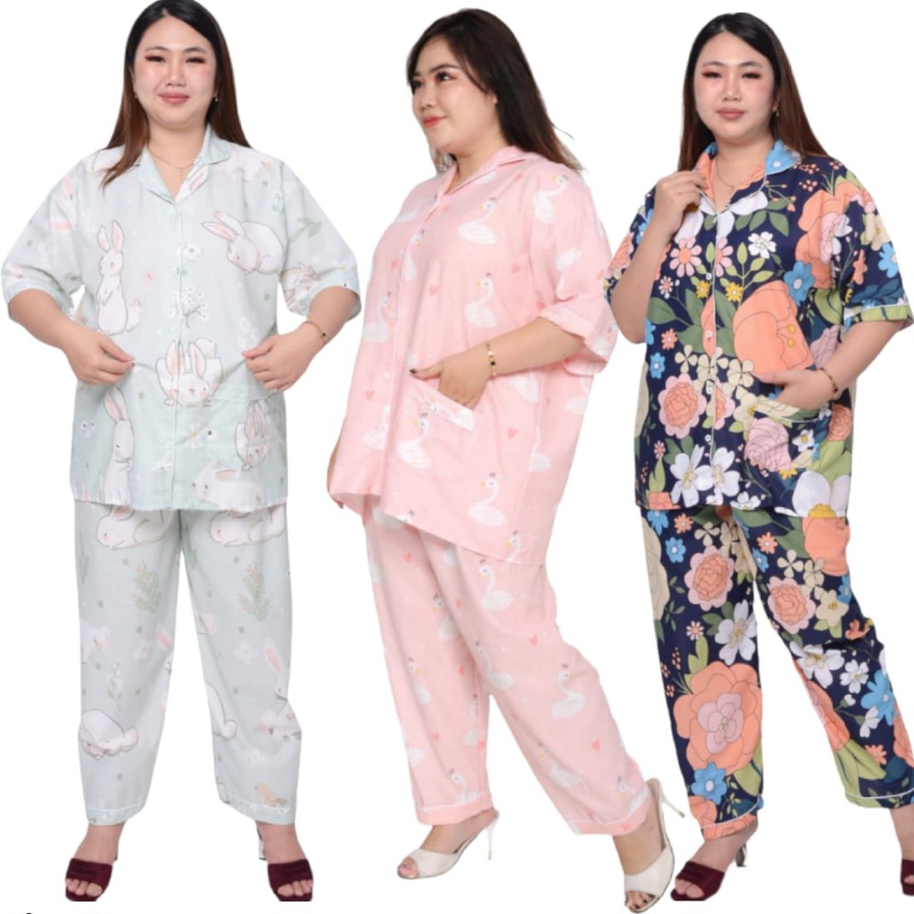 BAJU TIDUR JUMBO LD 140/PIYAMA SET CELANA PANJANG PEREMPUAN BIG SIZE BAHAN KATUN