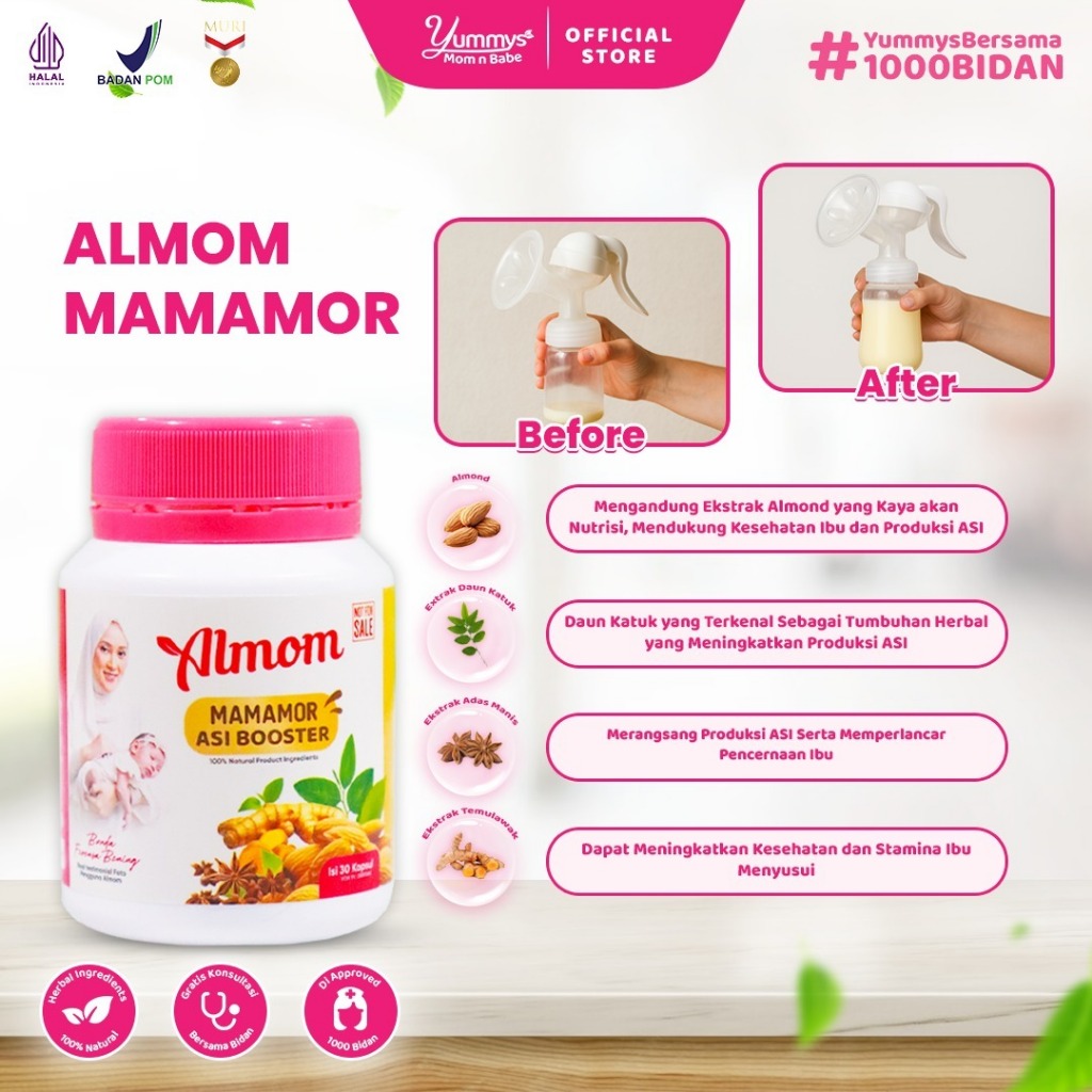 Almom Mamamor ASI Booster | Pelancar ASI & cegah KOLIK | Nutrisi Terbaik Ibu & Bayi | Isi 30 Kapsul