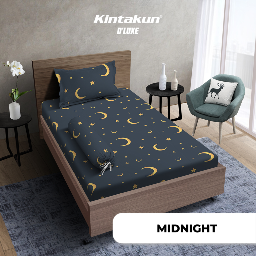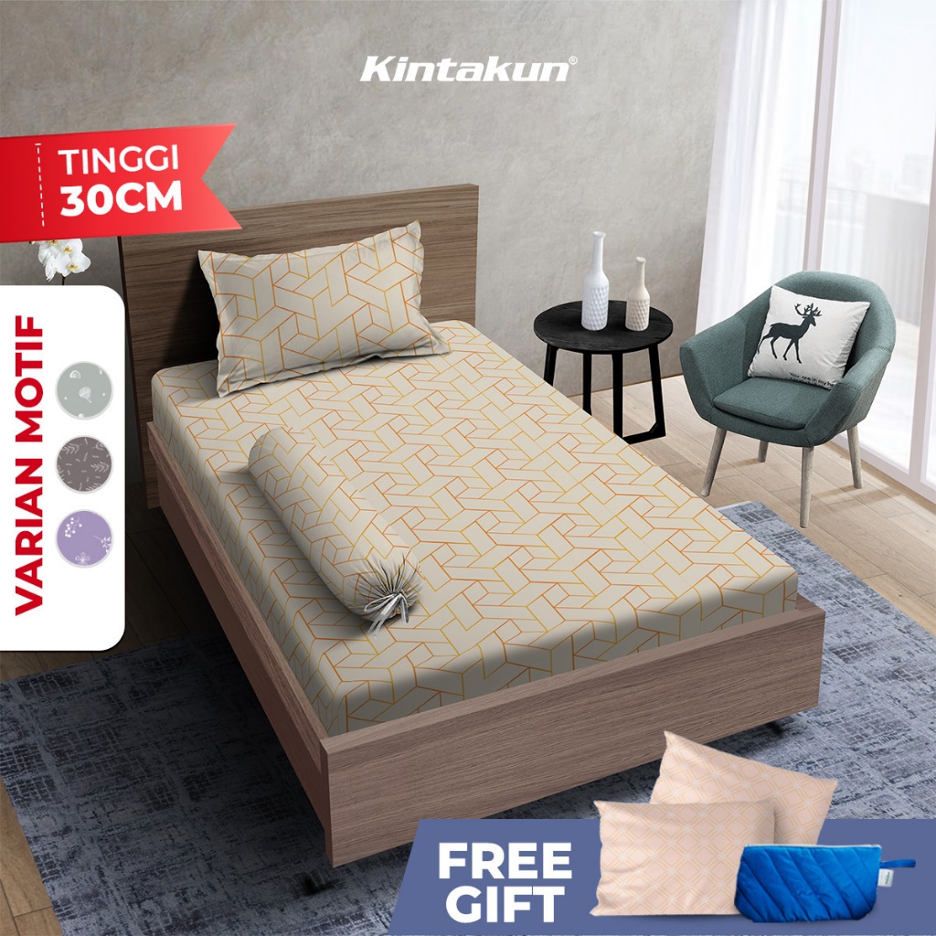 Kintakun Sprei Fitted 120x200 Tinggi 30cm Extra Single D'LUXE GOLD Seprai Metallic Printing Anti Bakteri - Multivarian