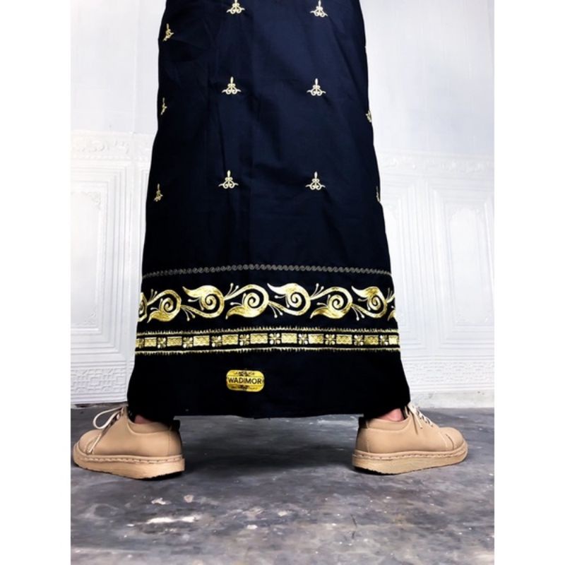 sarung bordir warna hitam,benang putih,motip senada aceh kerawang gayo