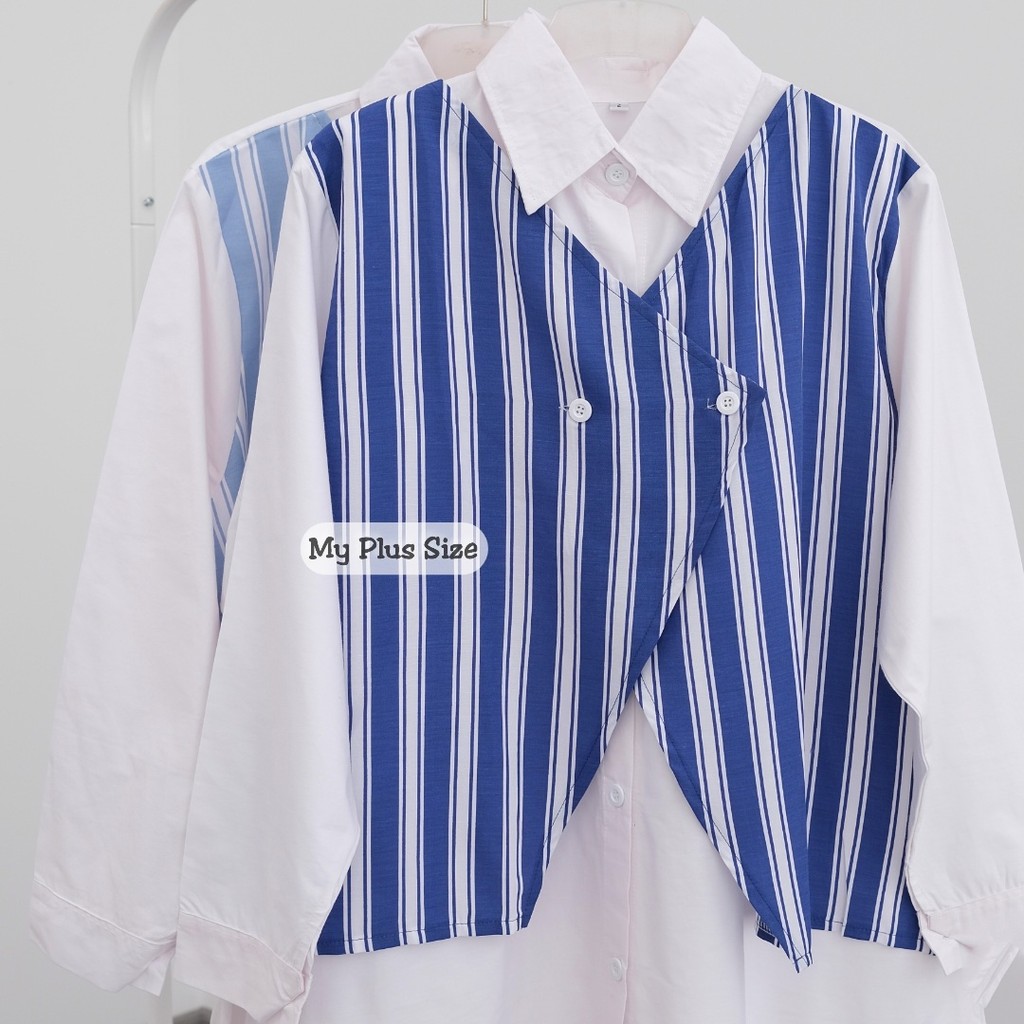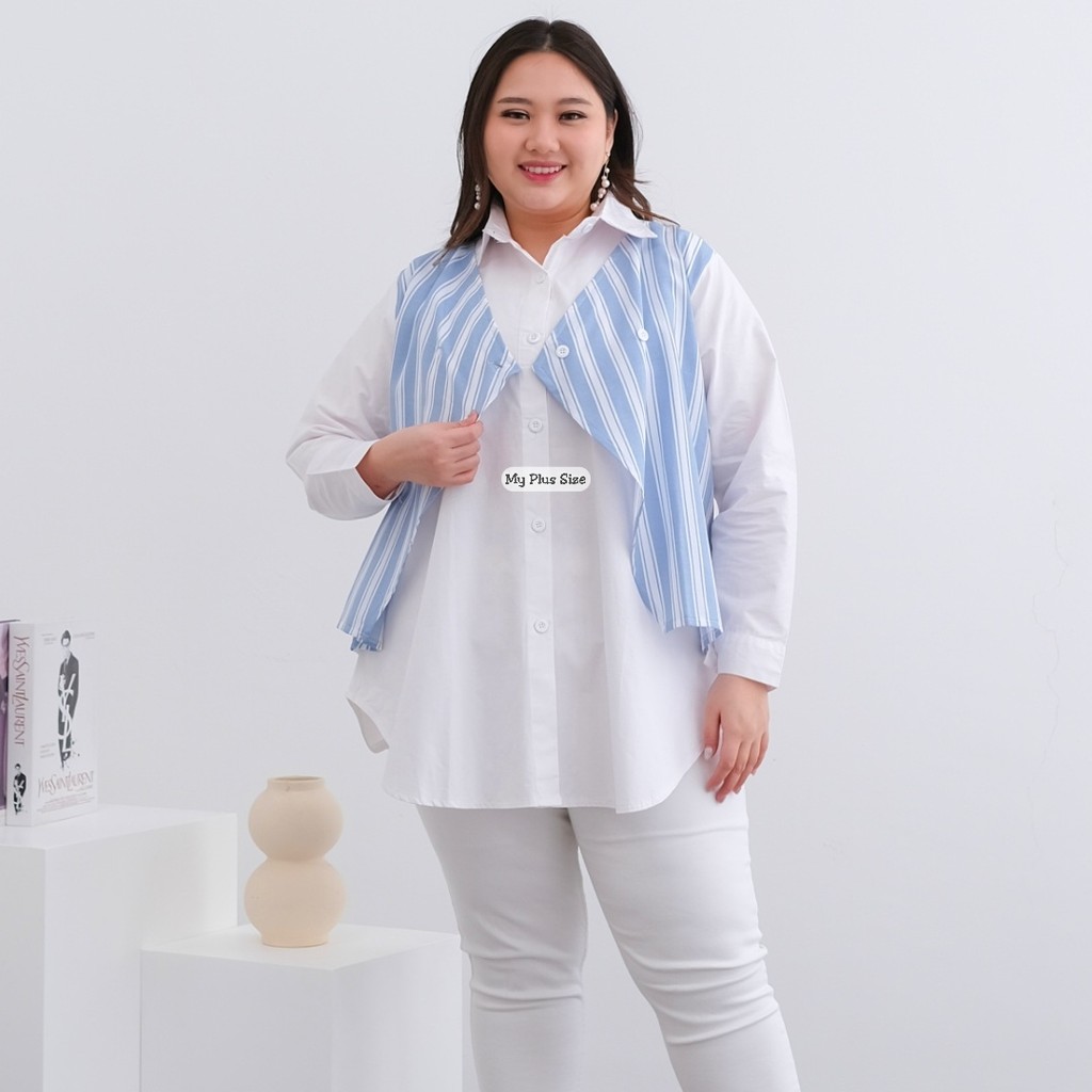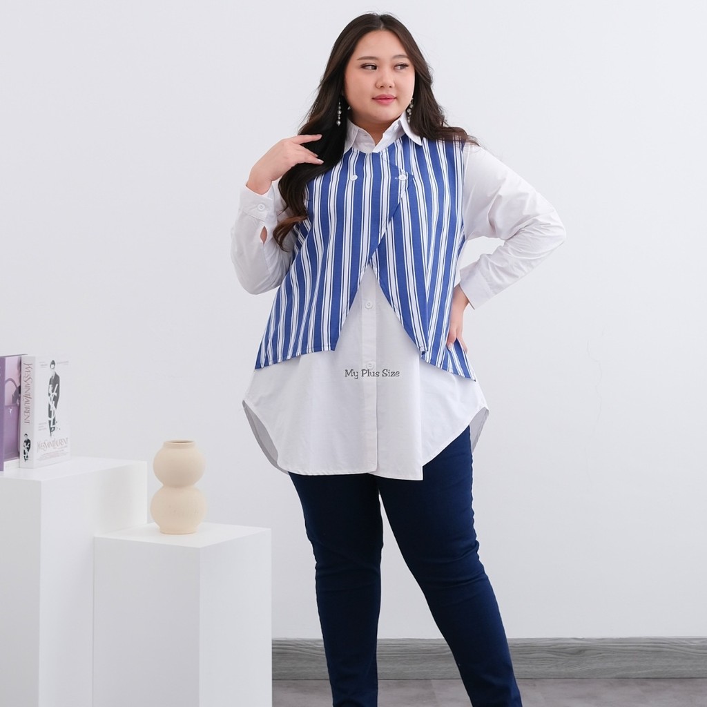 Kemeja Rompi Salur Modern Jumbo Wanita 3846, Ld 125, 135 & 142 cm / Kemeja Vest Jumbo