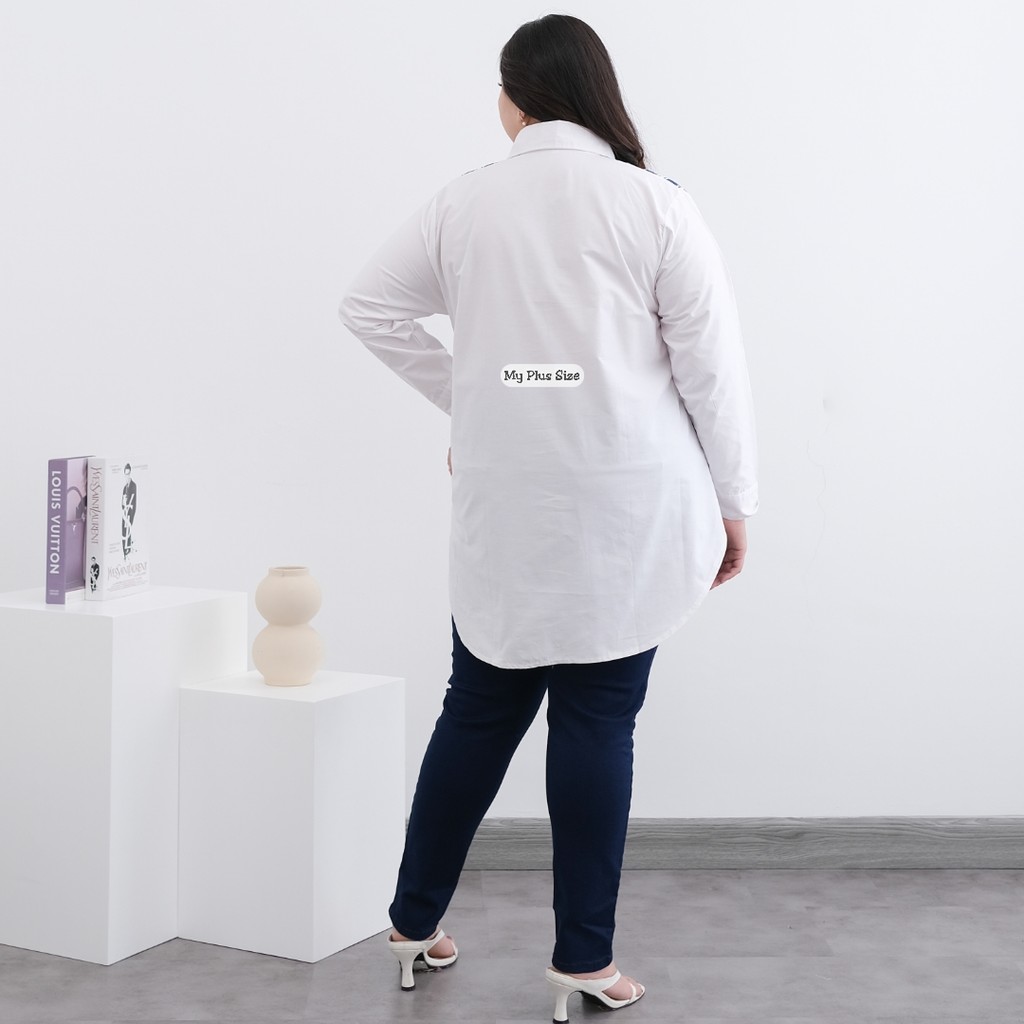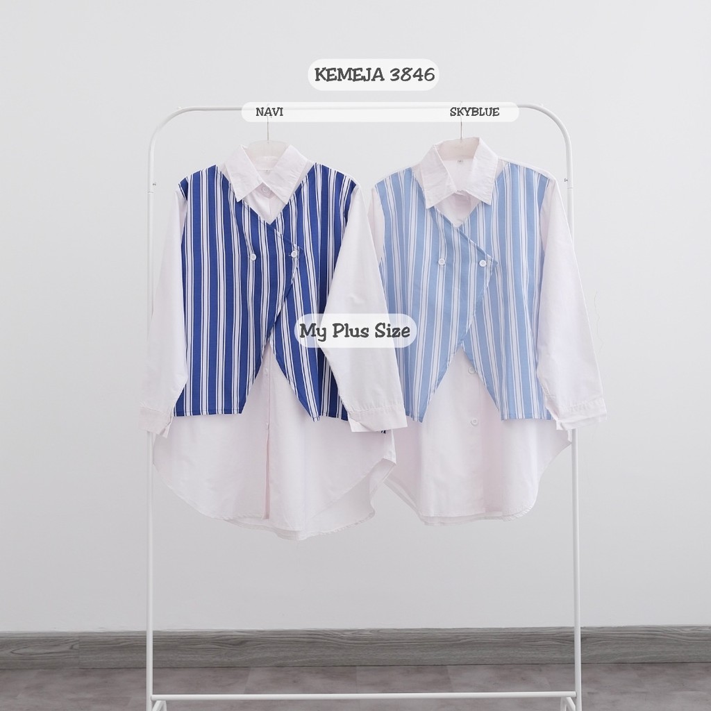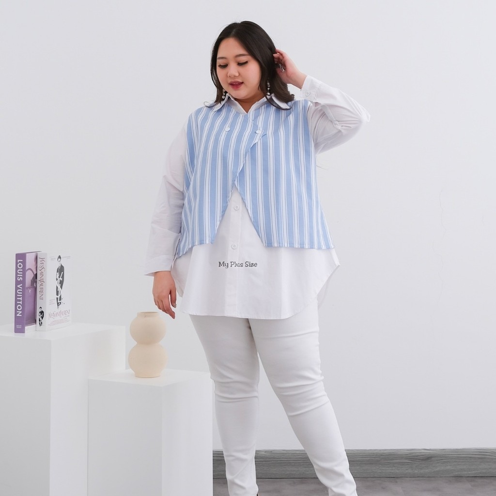 Kemeja Rompi Salur Modern Jumbo Wanita 3846, Ld 125, 135 & 142 cm / Kemeja Vest Jumbo