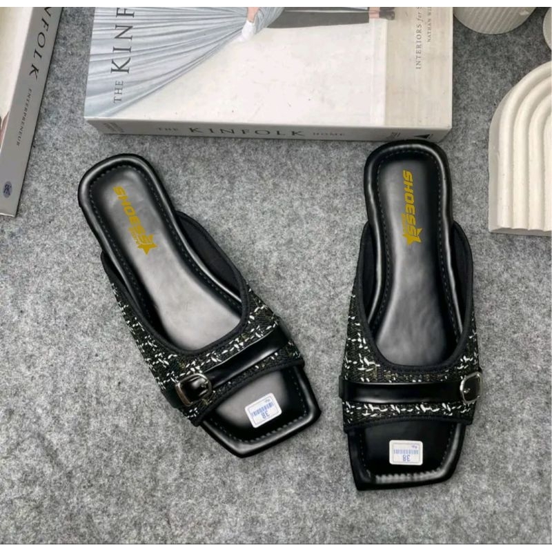 Sandal Platform Wanita Terbaru Kekinian 2025 Gaya Korean Style Viral Flat Karet Sendal Cewek Motif Trendy