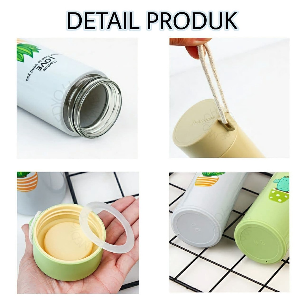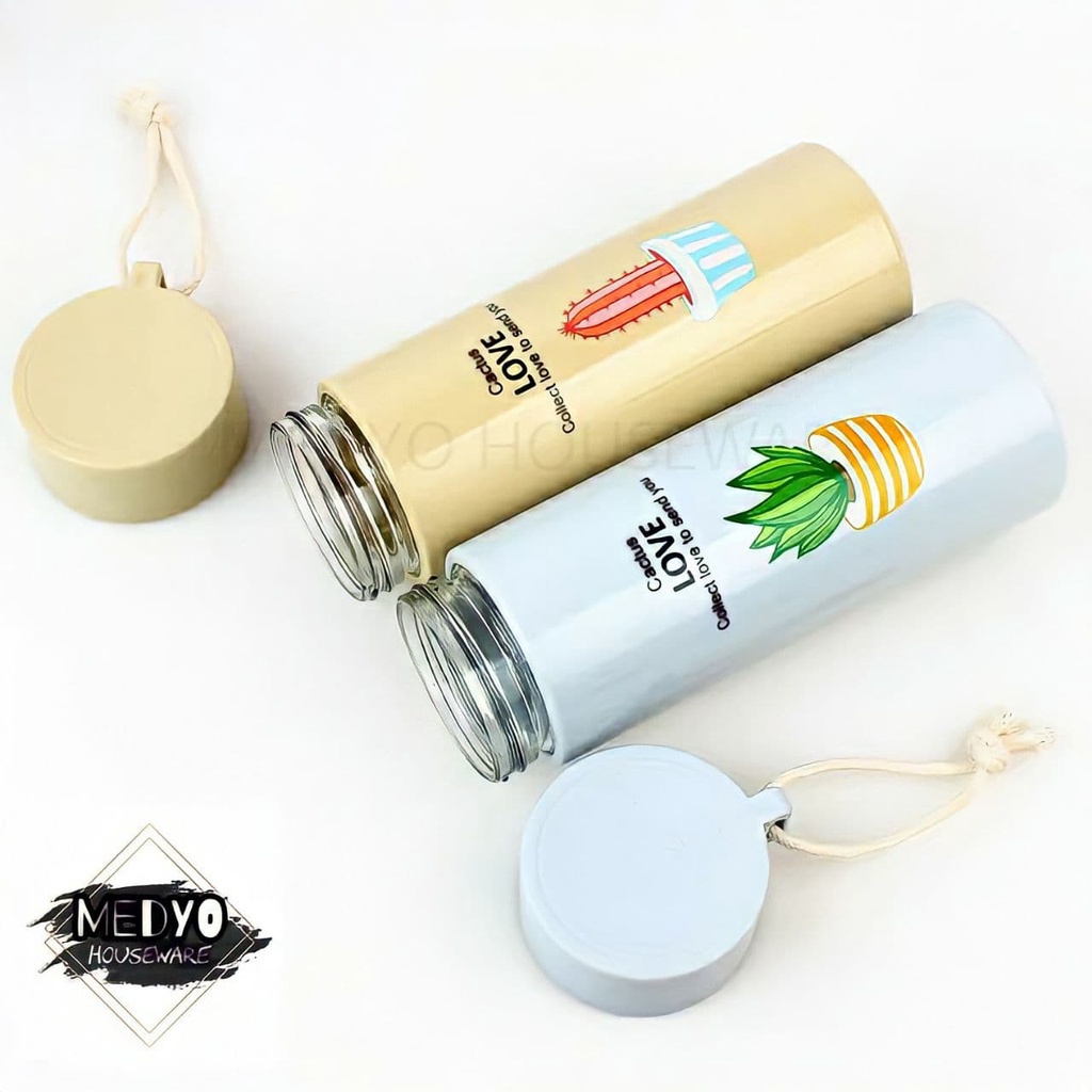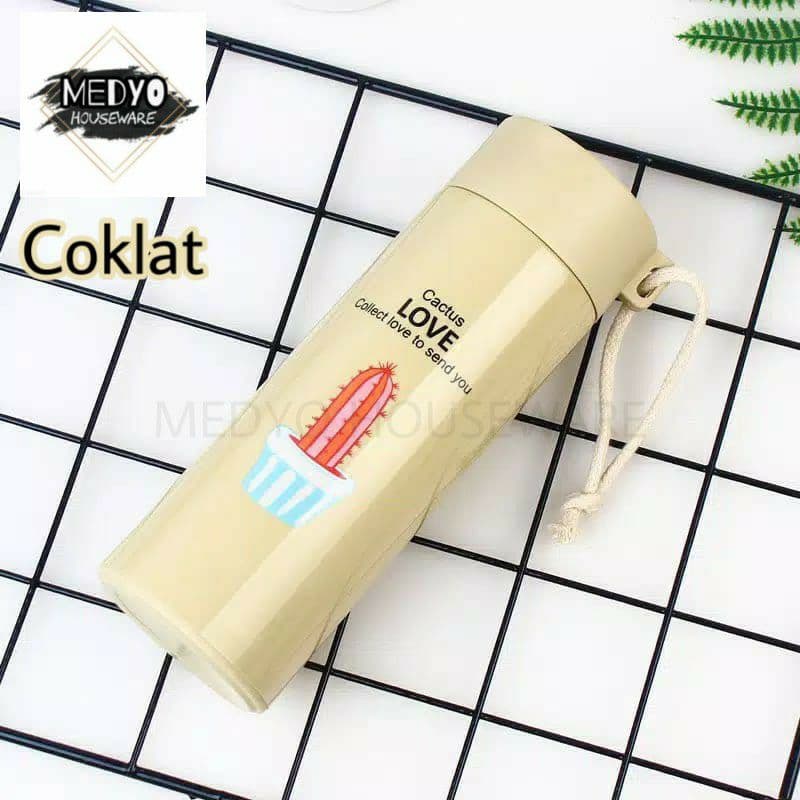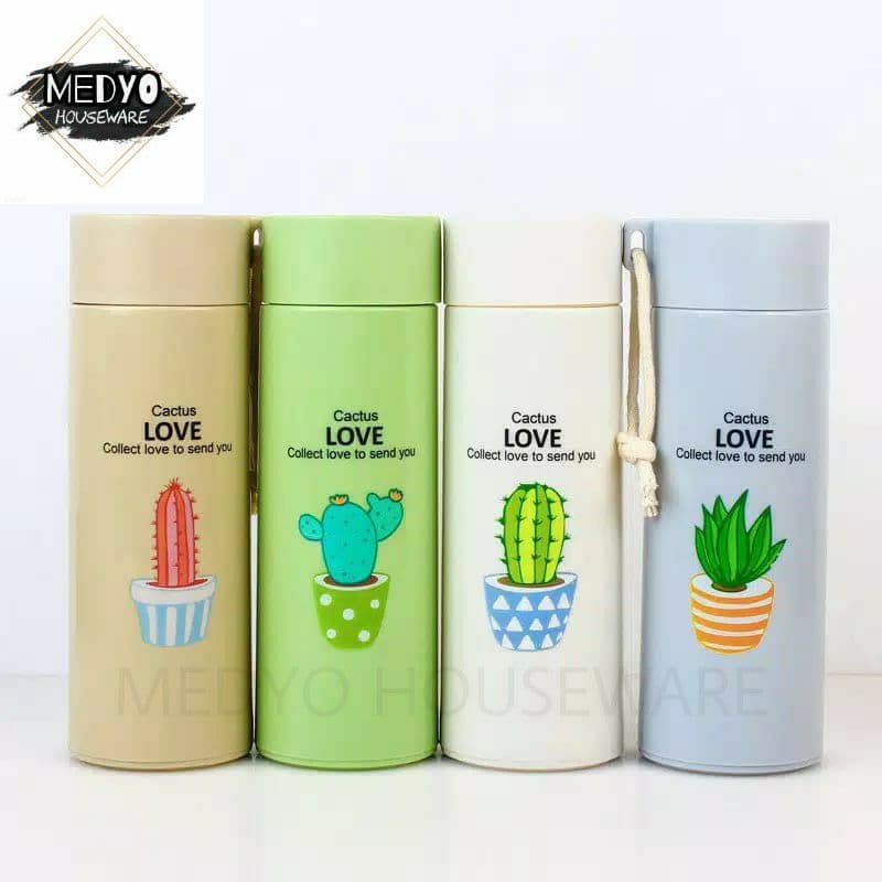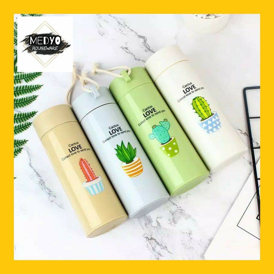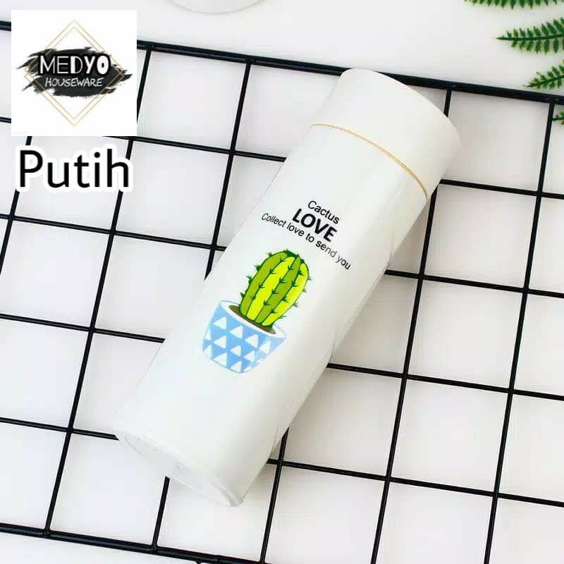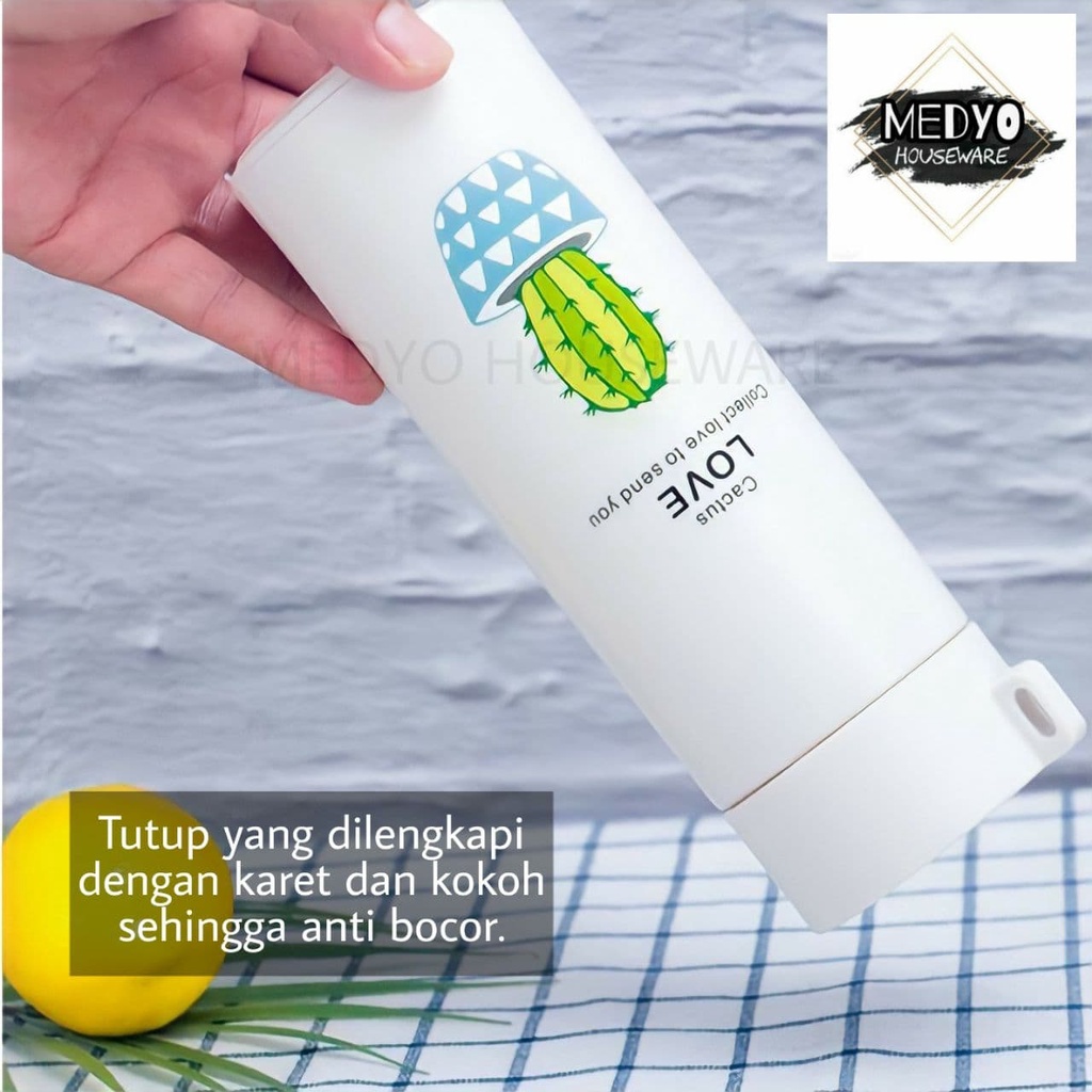 Botol Minum Kaca Warna - Termos Kaca Unik MOTIF TANAMAN KAKTUS 400ml