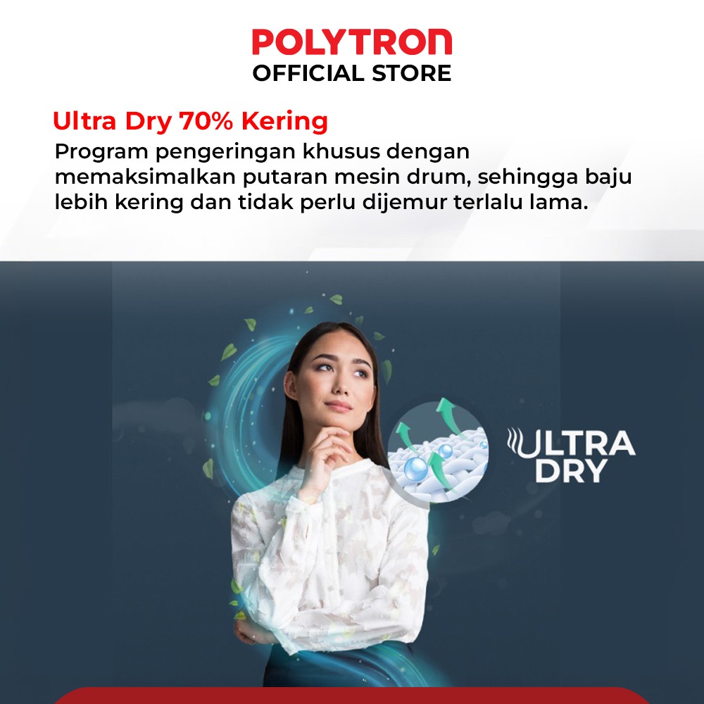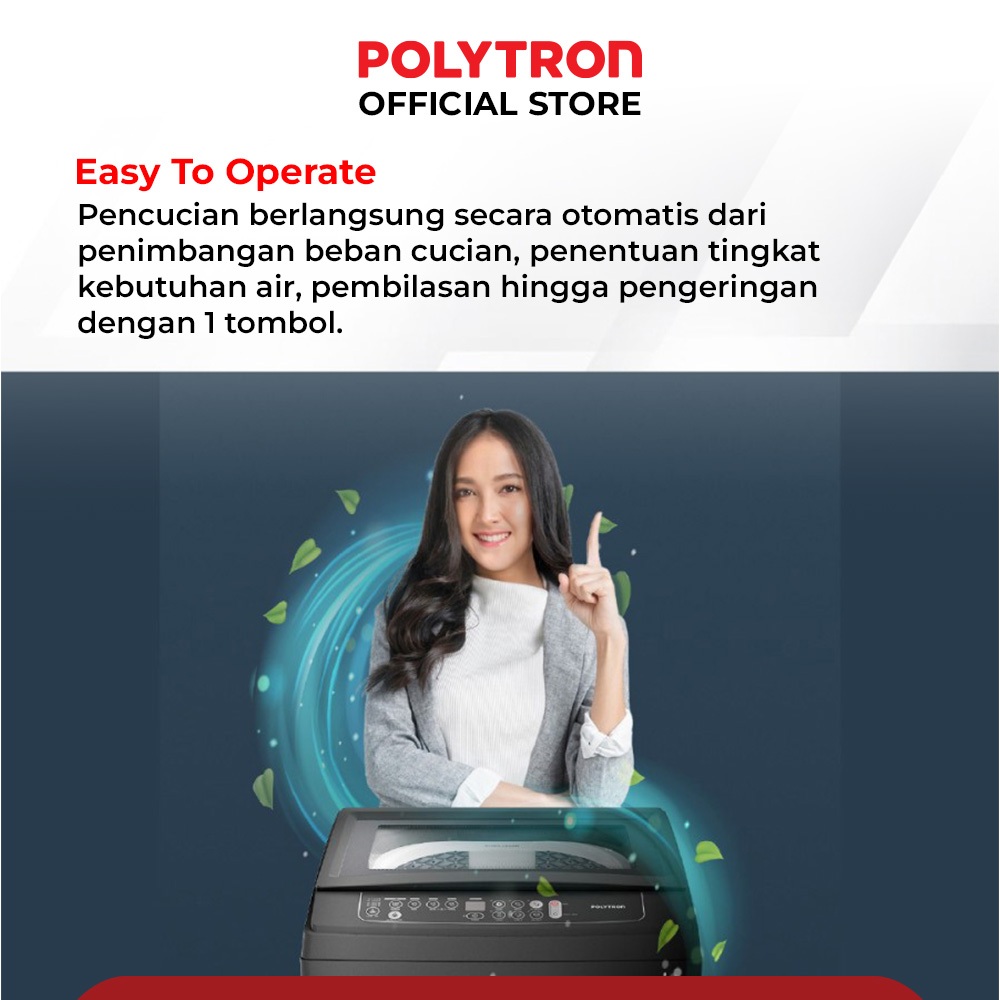 POLYTRON Mesin Cuci 1 Tabung Zeromatic Laguna series Hijab 10 KG - PAW 1029Y