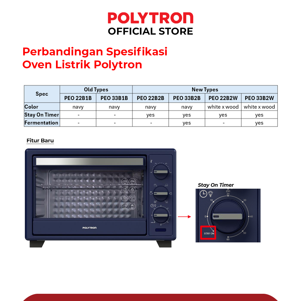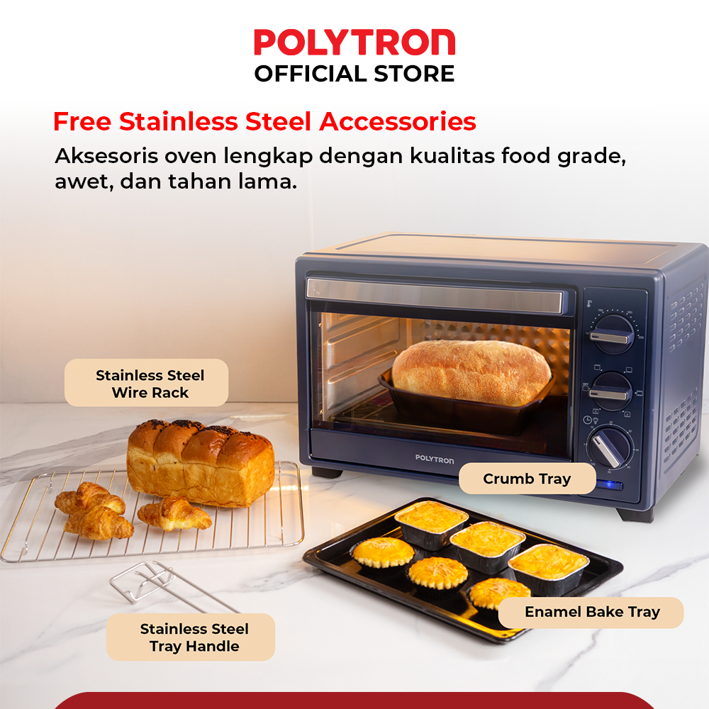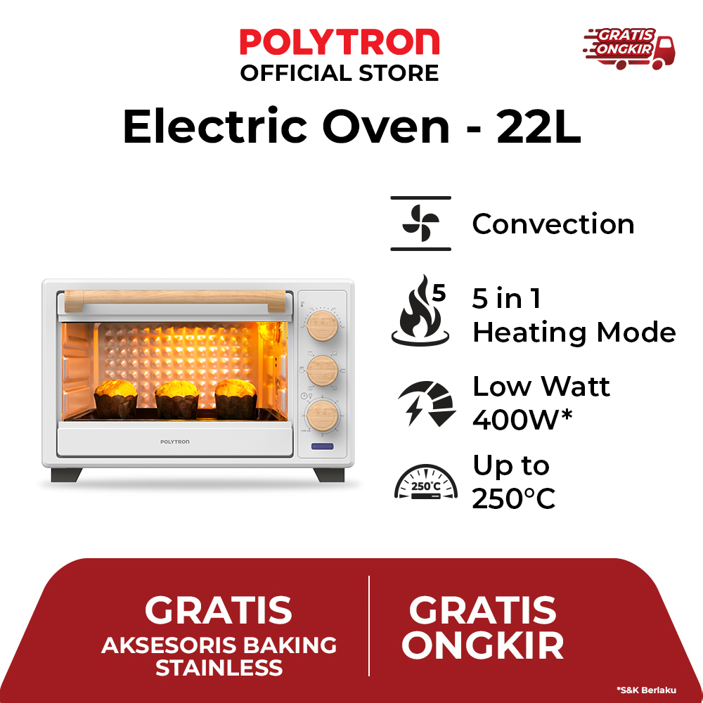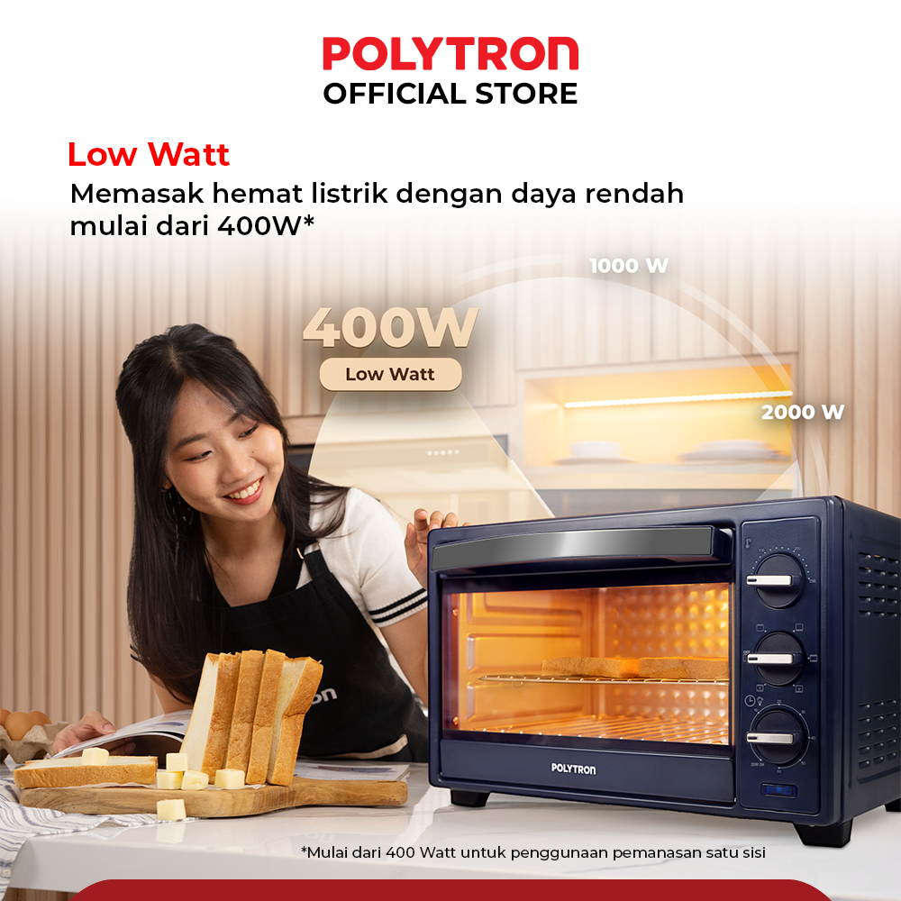 POLYTRON Kitchenmate Oven Listrik Low Watt 22 Liter - PEO 22B1B / PEO 22B2B / PEO 22B2W