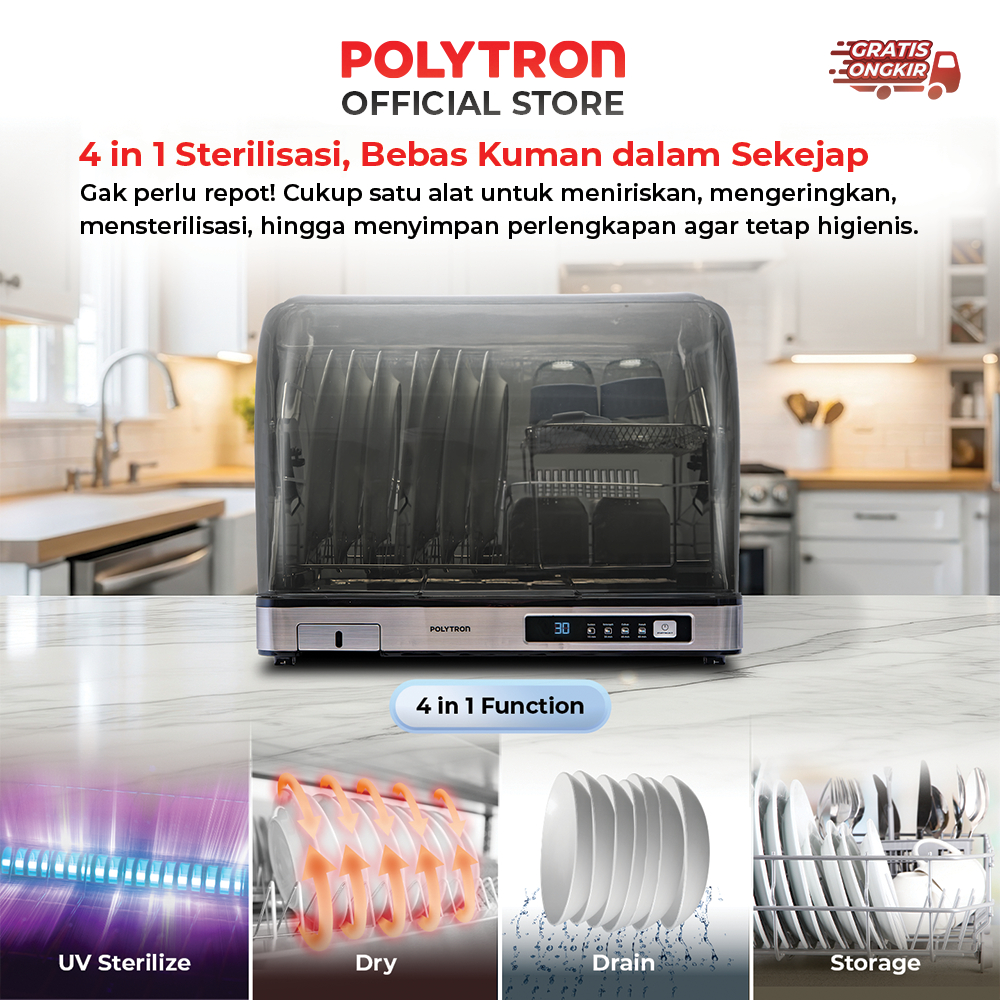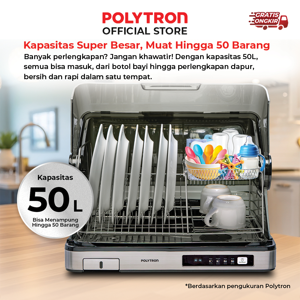POLYTRON Kitchenmate Dish Dryer UV Sterilizer Botol Bayi Rak Pengering 50 Liter - PDD 501UV