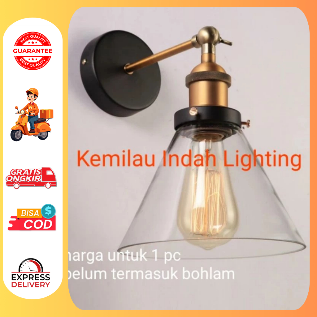 !!!HOT SALE!!! SLB345-1/GD LAMPU DINDING HIAS NAKAS MINIMALIS VINTAGE KACA E27 TERAS CAFE KAFE DEKORASI WALL LAMP