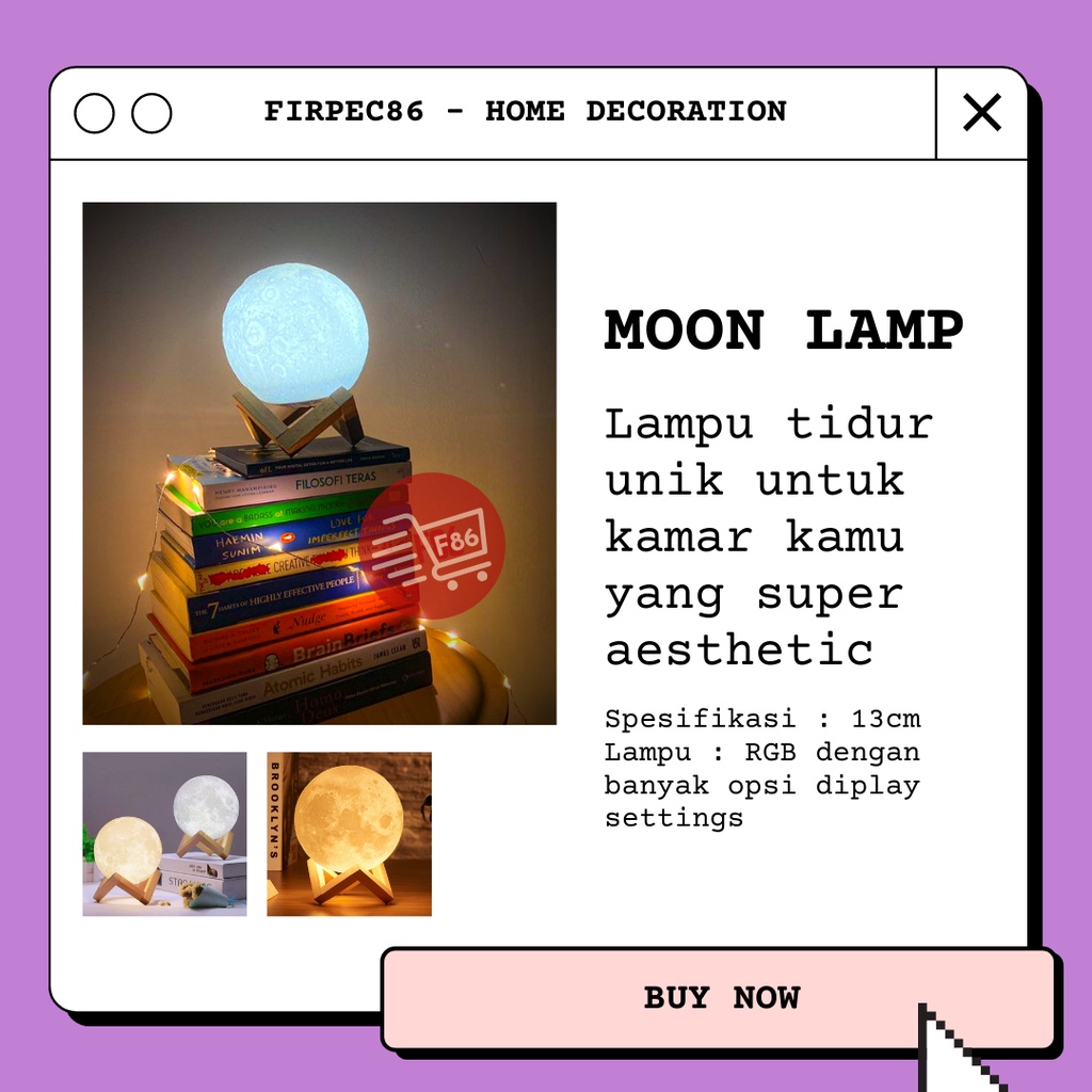 F86 Moon Lamp Lampu Tidur Bentuk Bulan 13CM 16 warna RGB + Remote