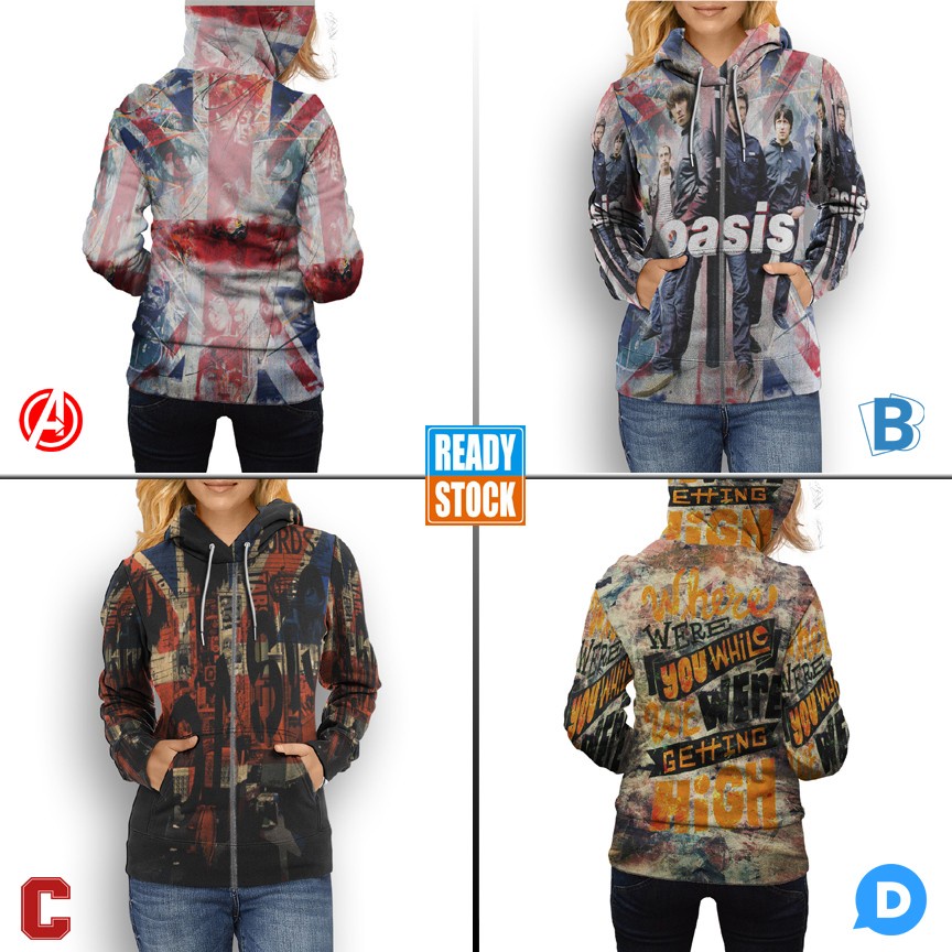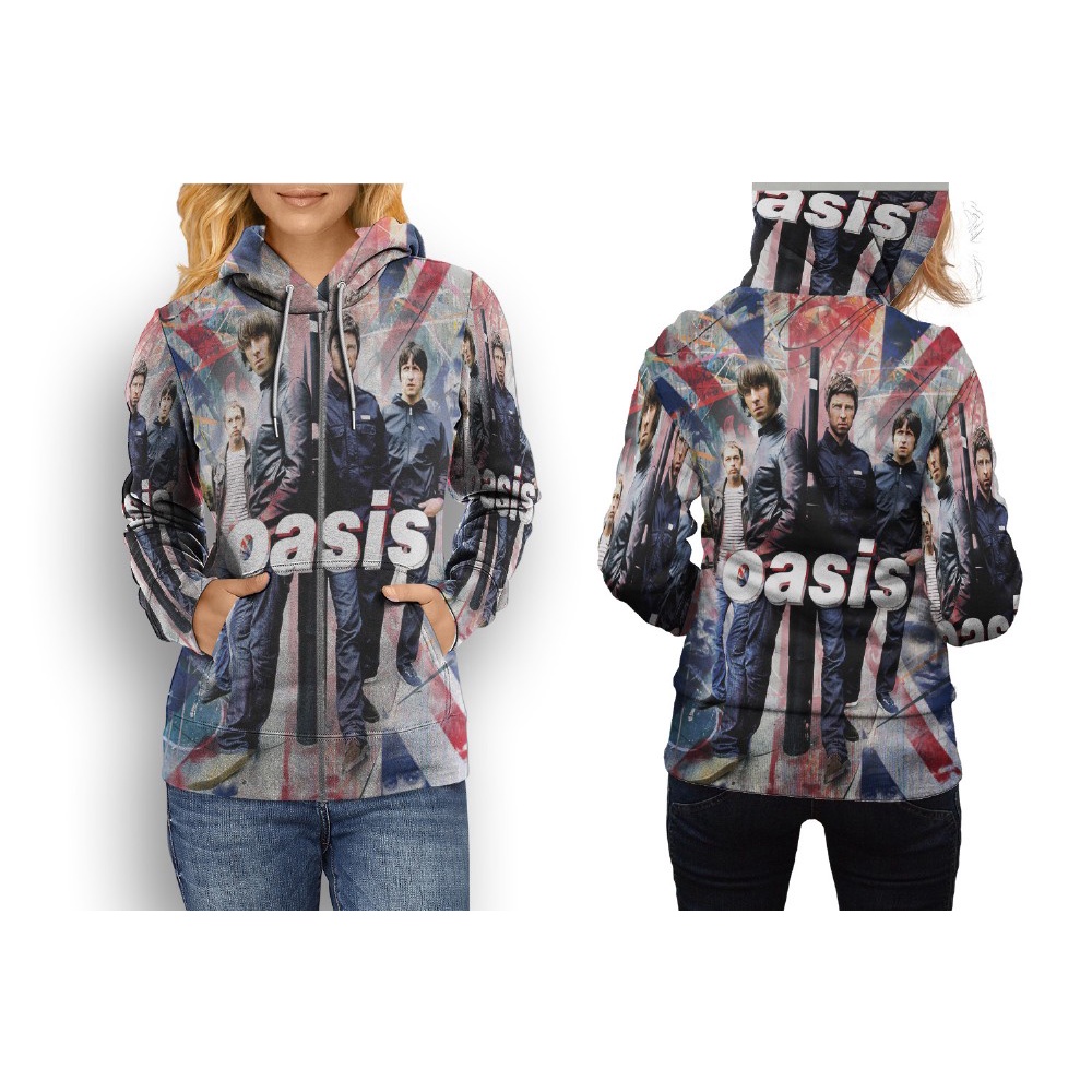 Jaket Hoodie Oasis Band Hoodie SKU-7434105099011 Hoodie Fullprint Casual Zipper Hoodie Fullprint New Casual Unisex Hoodie Ritsleting Bahan Polyester Jersey