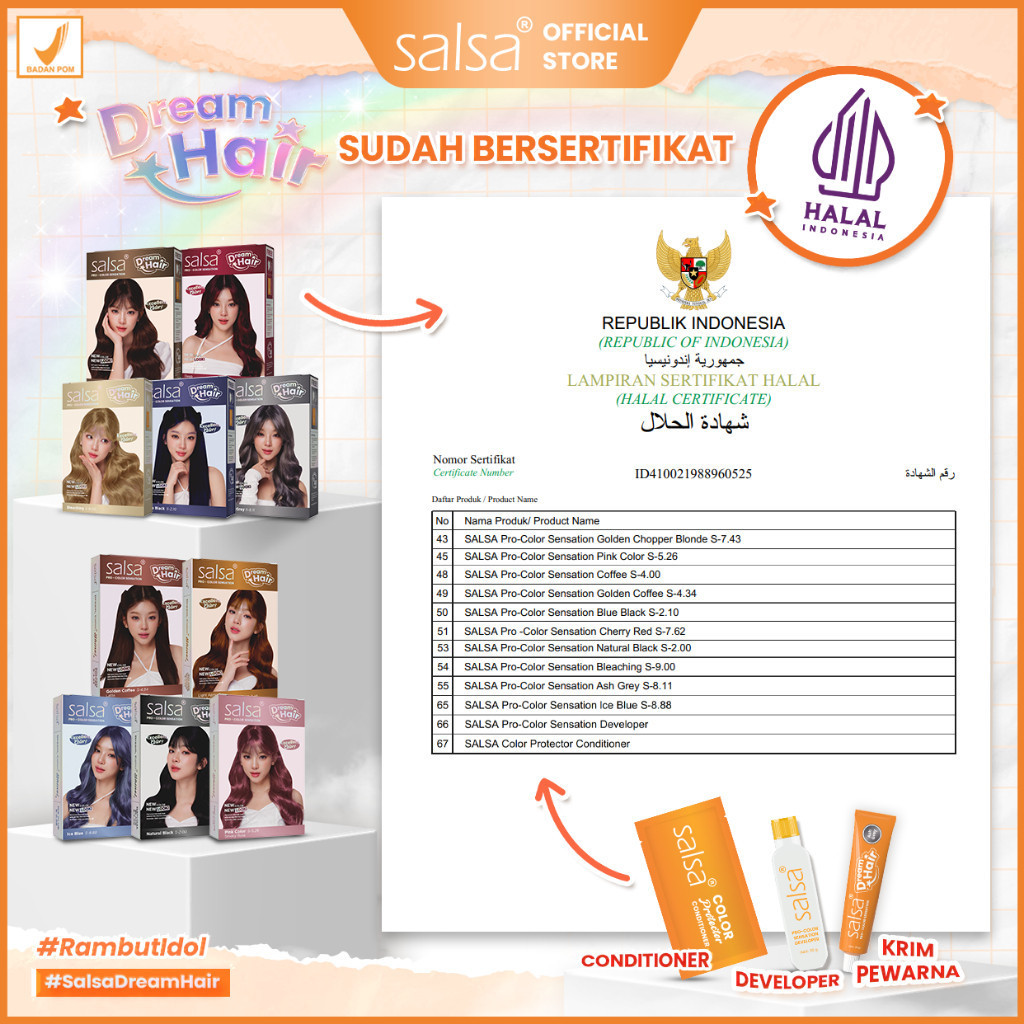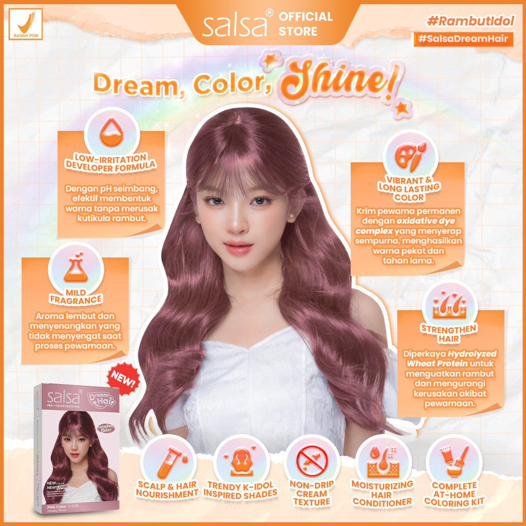 SALSA Dream Hair Color | Cat Rambut Permanen Praktis Intens Tahan Lama | Semir Rambut Idol Korea | Permanent Hair Color | Pewarna Rambut Alami