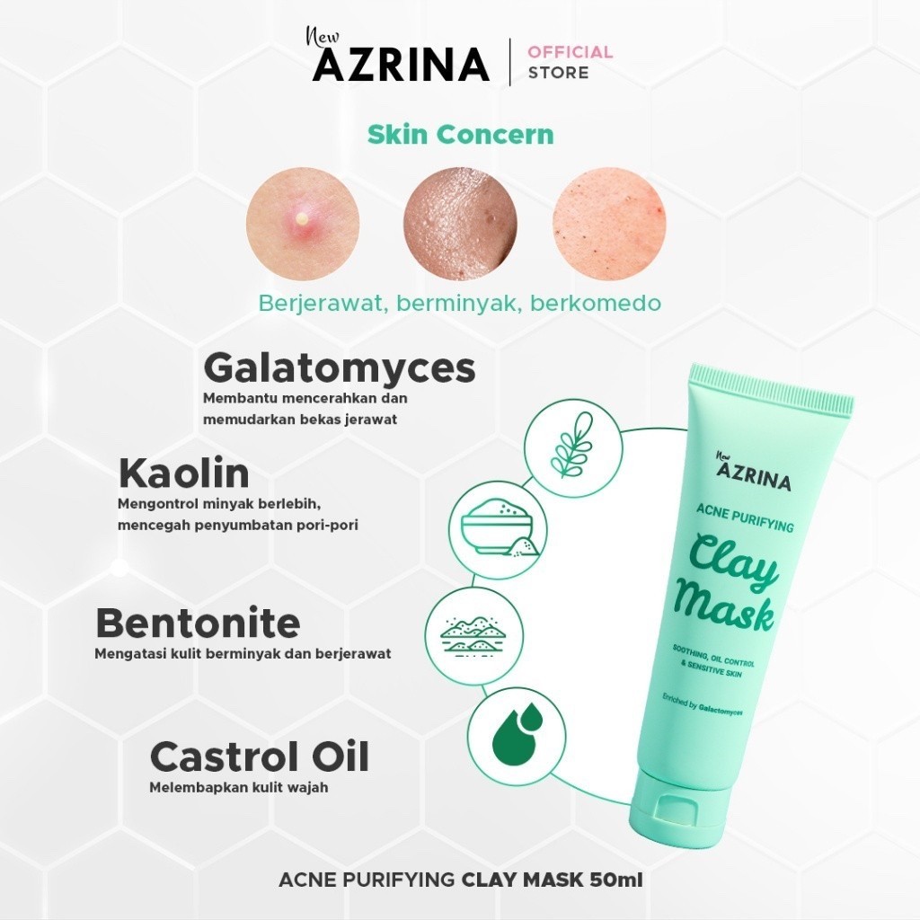 AZRINA Acne Purifying Clay Mask | Masker Wajah Mengobati Jerawat Beruntusan Mengurangi Komedo