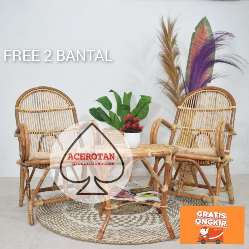 KURSI TERAS ROTAN PENGKI JUMBO SIZE DEWASA ARMCHAIR FULLSET BONUS BANTAL