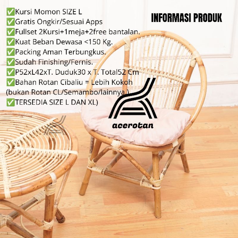 KURSI TERAS ROTAN MOMON LARGE DEWASA BONUS BANTAL DUDUK