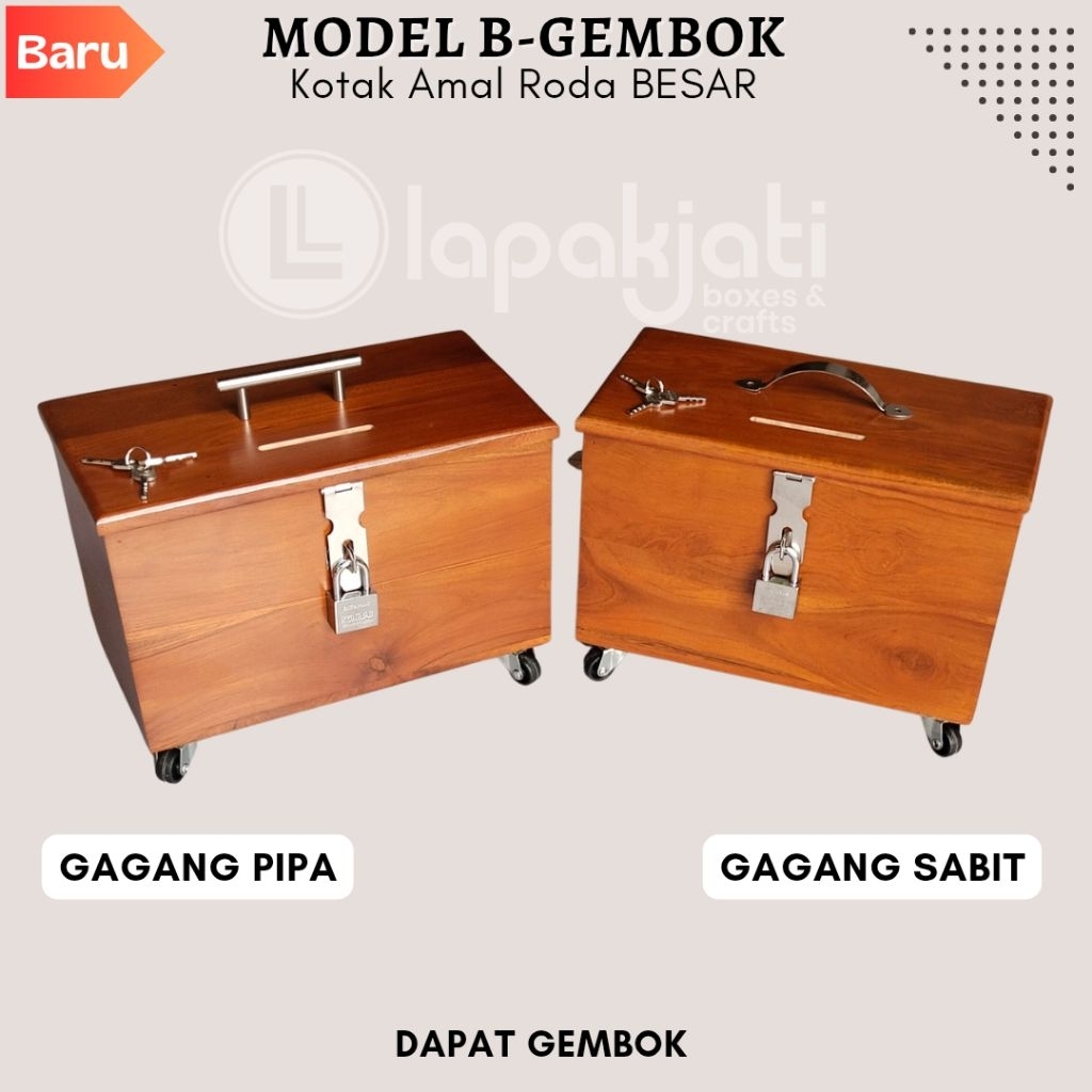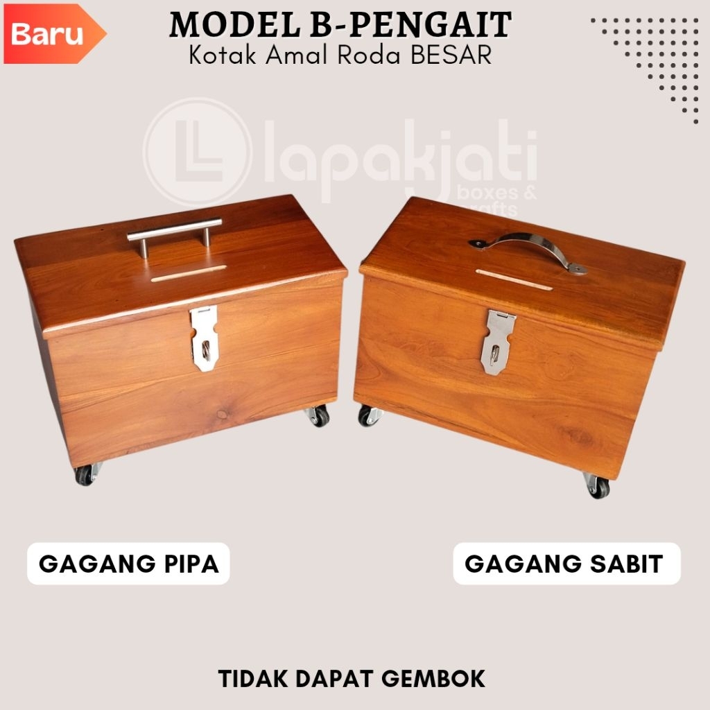 KOTAK AMAL RODA BESAR Kotak Infaq Masjid Kotak Uang Keliling Kayu Jati Polos Siap Kirim Kualitas Premium