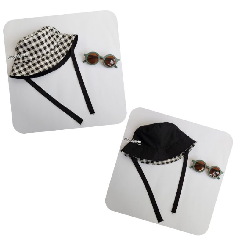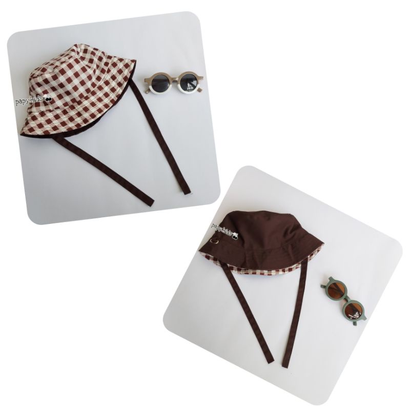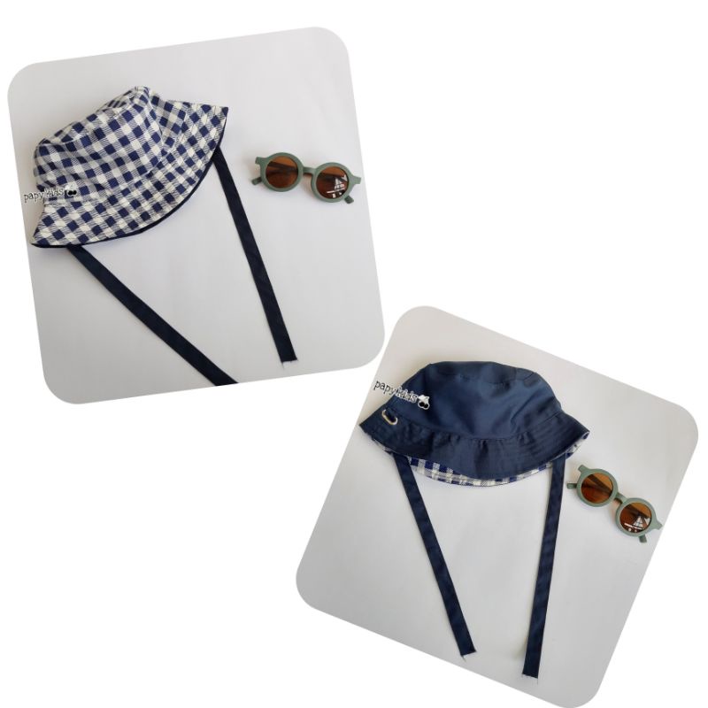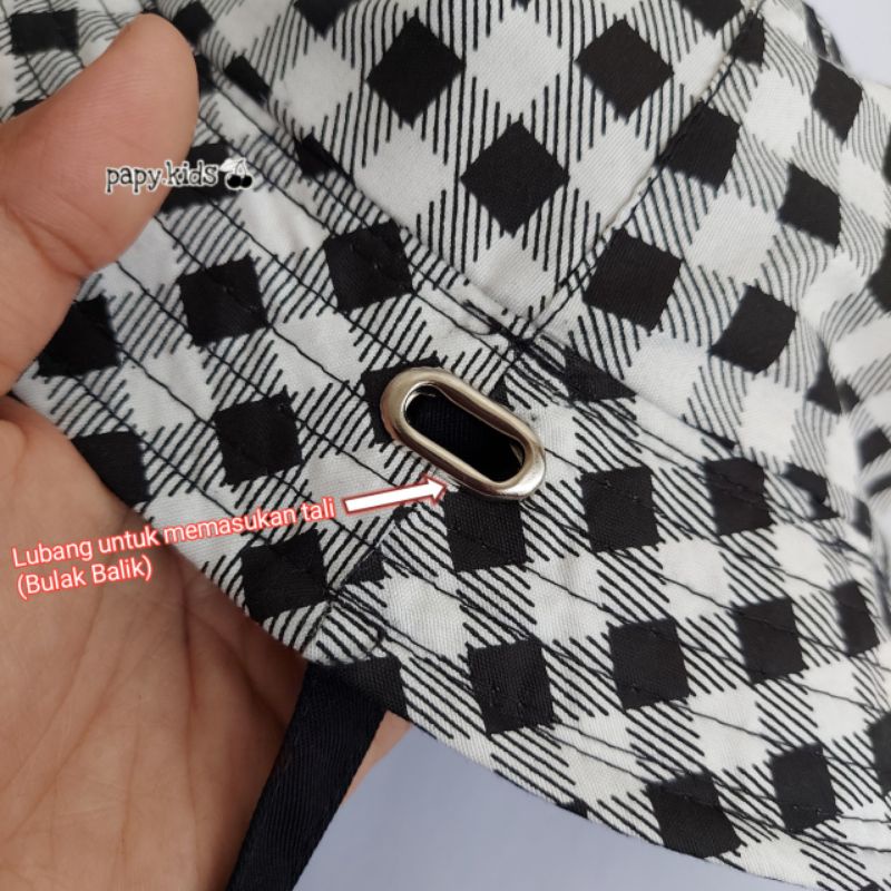 wide bucket hat anak kotak LBH5 / Topi bucket bayi bolak balik / Topi bucket anak tali